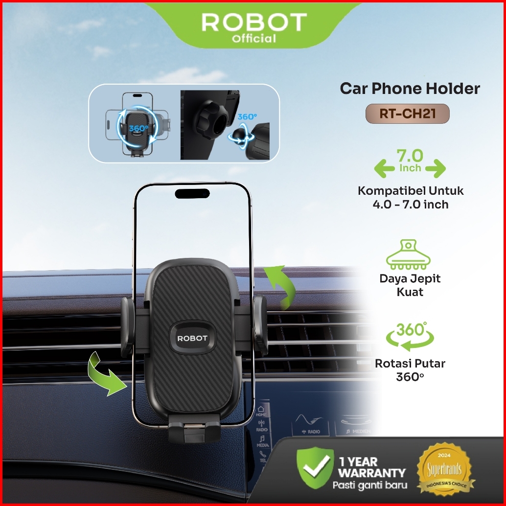 Robot Car Holder Rt-ch21 Black Rotatable For Smartphone Backseat Car Stand Holder - Garansi 1 Tahun