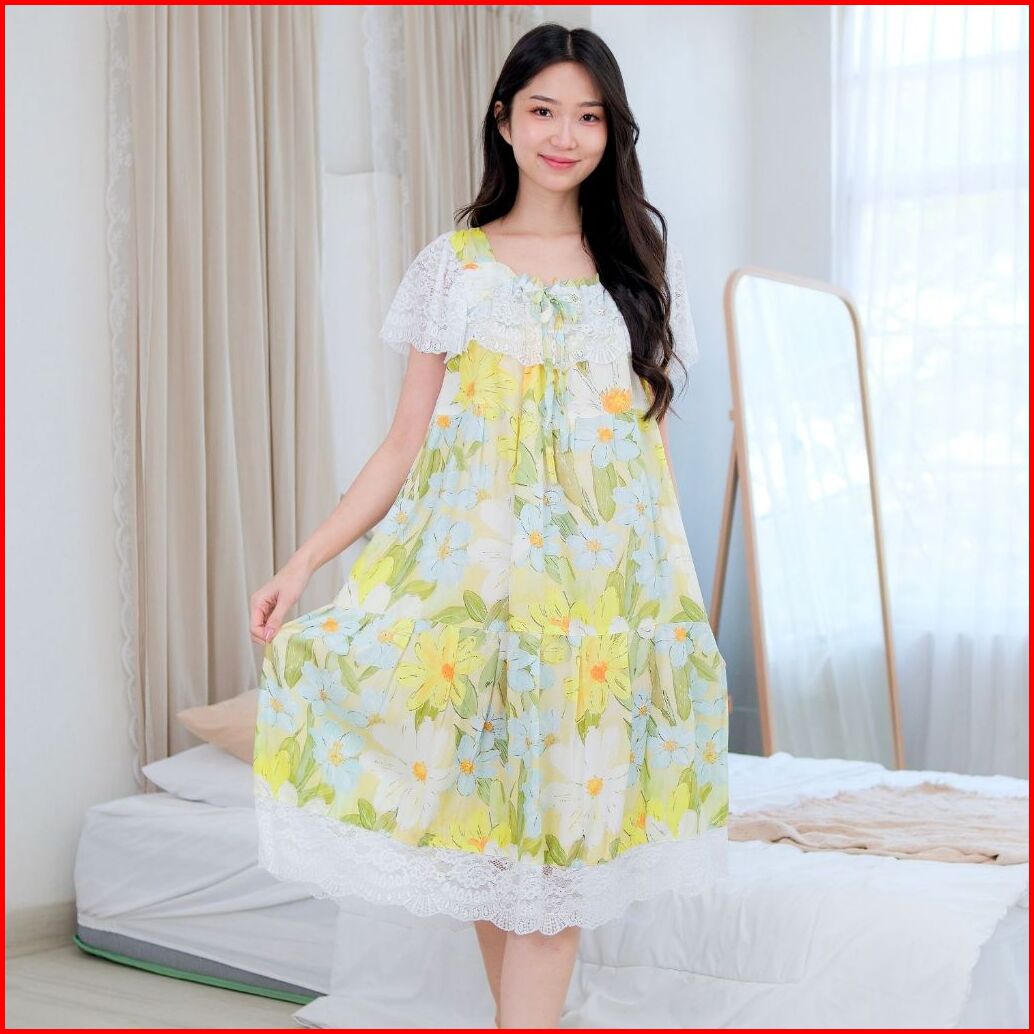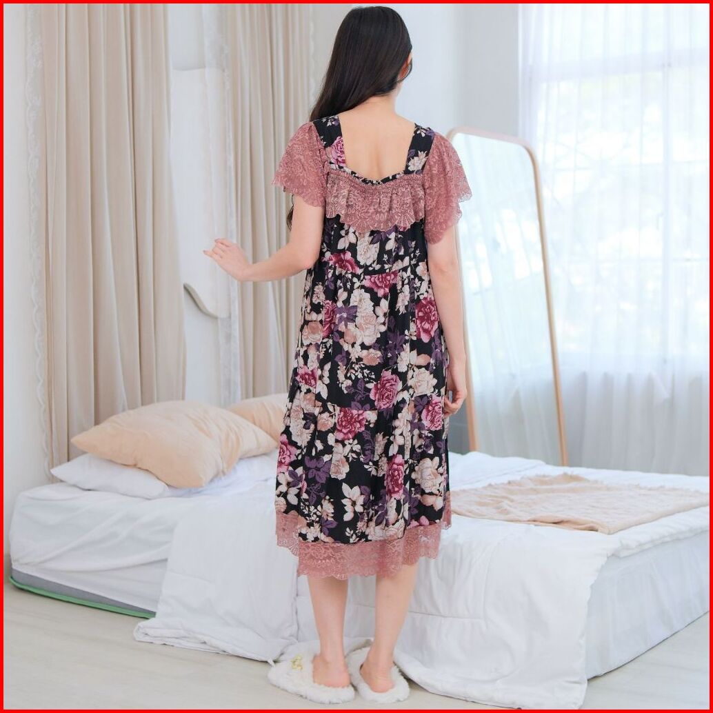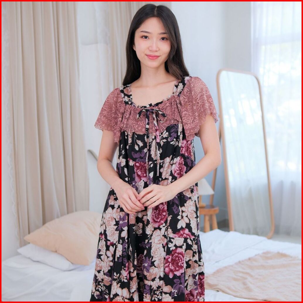Aurae - Zara Dress Tidur Floral Rayon Viscose Lengan Pendek Wanita