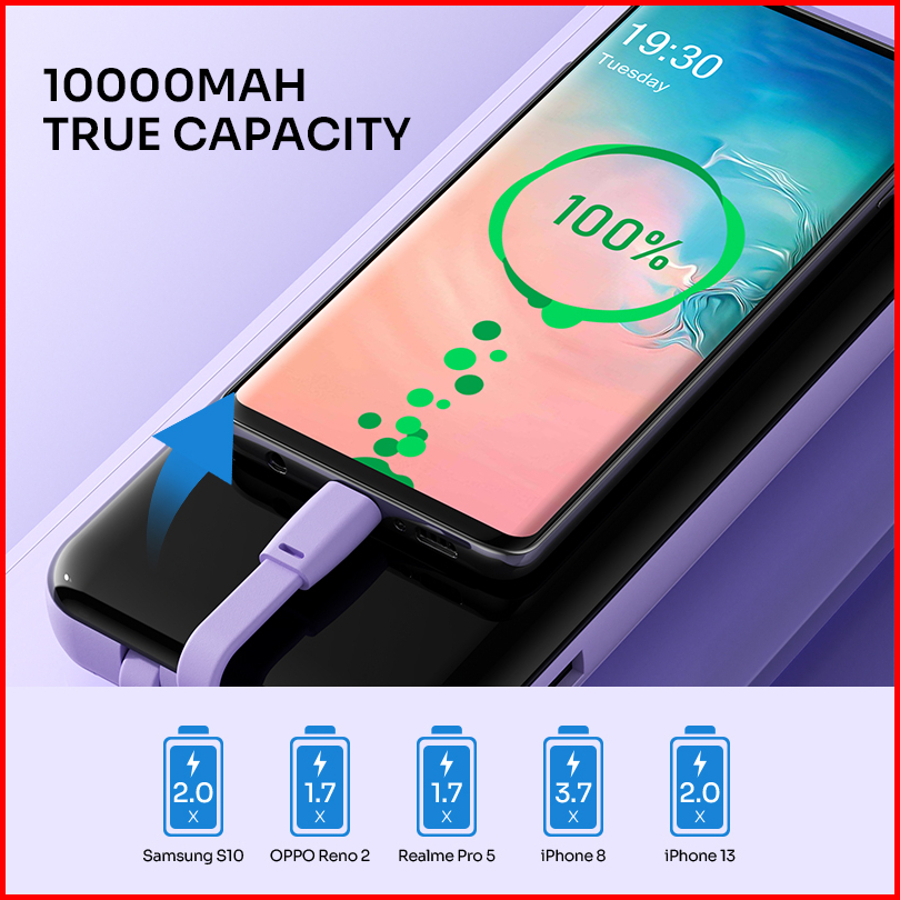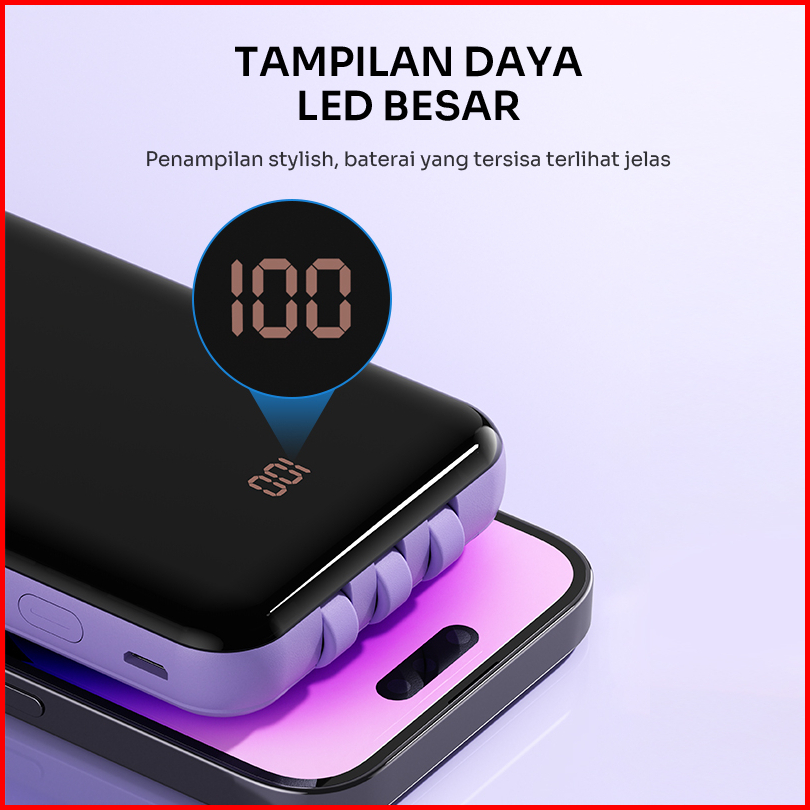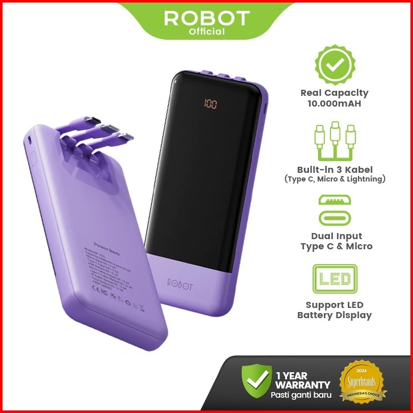 Robot Powerbank 10000mah Dilengkapi 3 Kabel Built-in Type C Lightning Micro Tampilan Layar Led Original - Garansi 1 Tahu