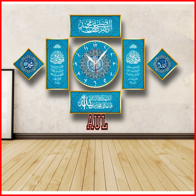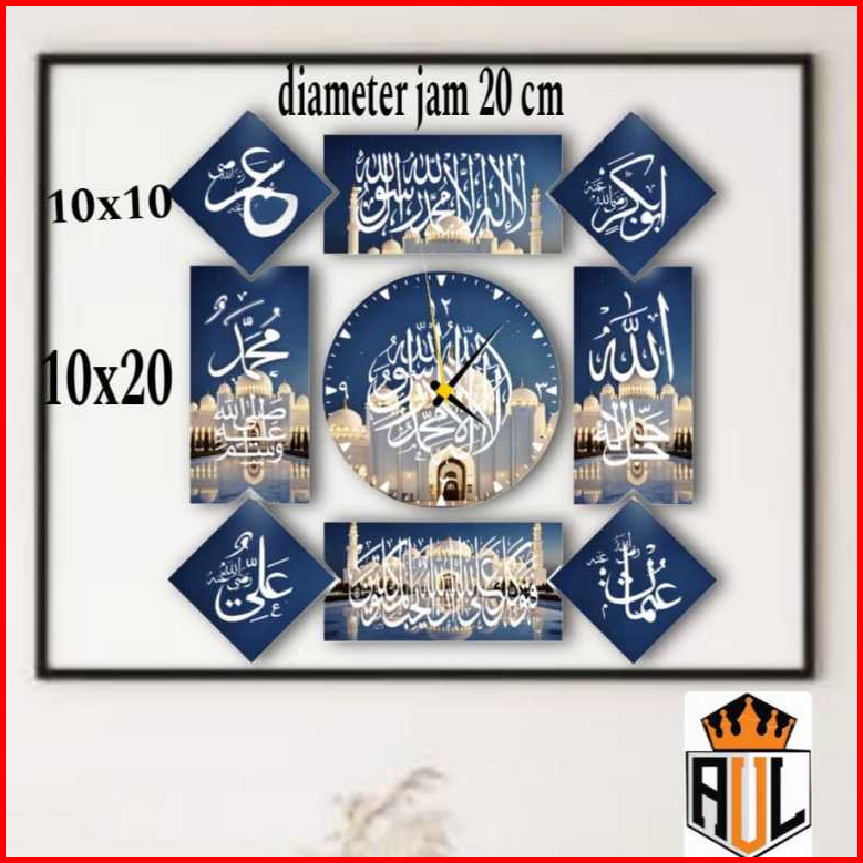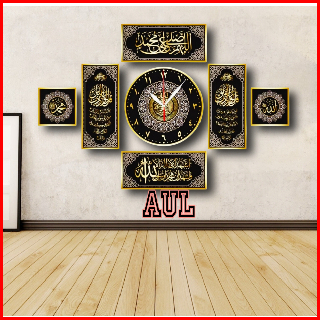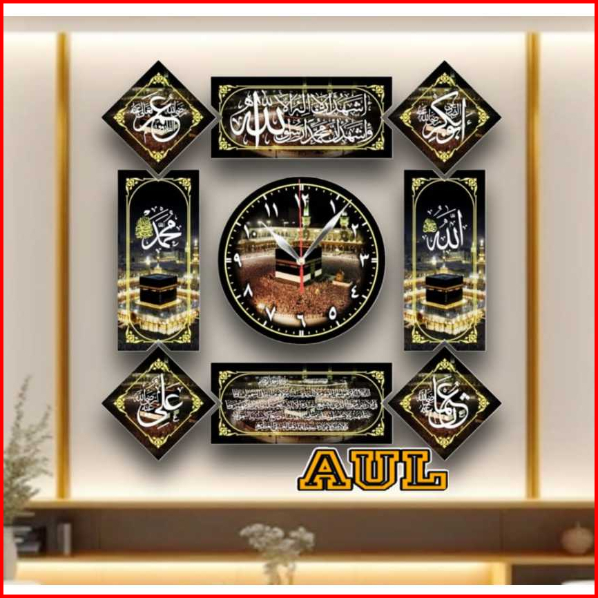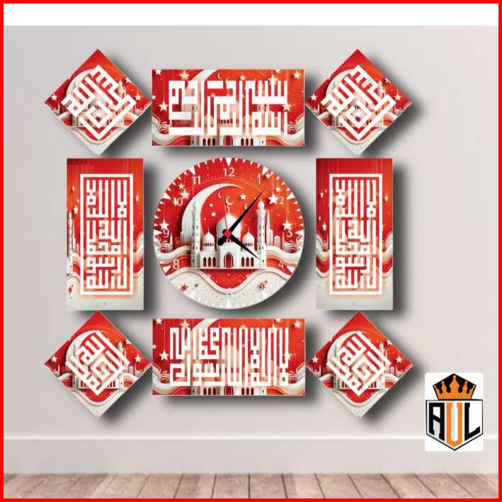 Jam Dinding Kaligrafi Mewah 8 Lafad Kayu Mdf