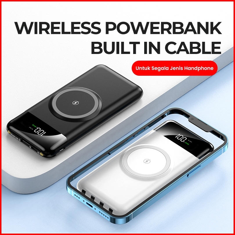 Skcbo Wireless Powerbank 20000mah Built In Cable Kompatibel Dengan Semua Ponsel Ori For Iphone Android