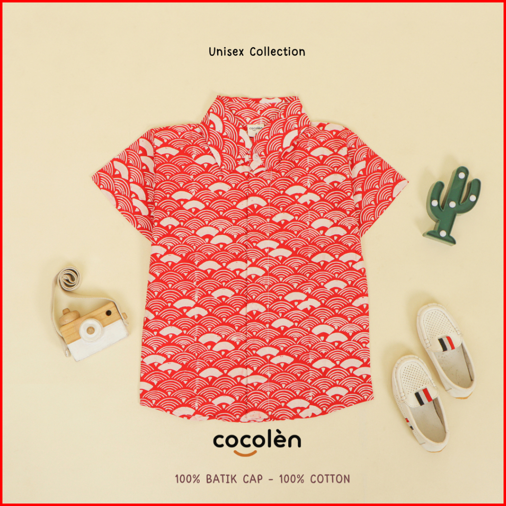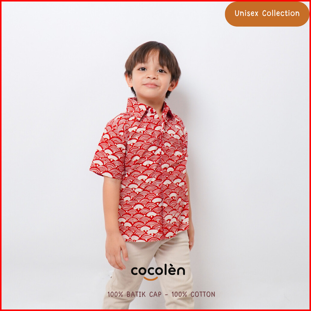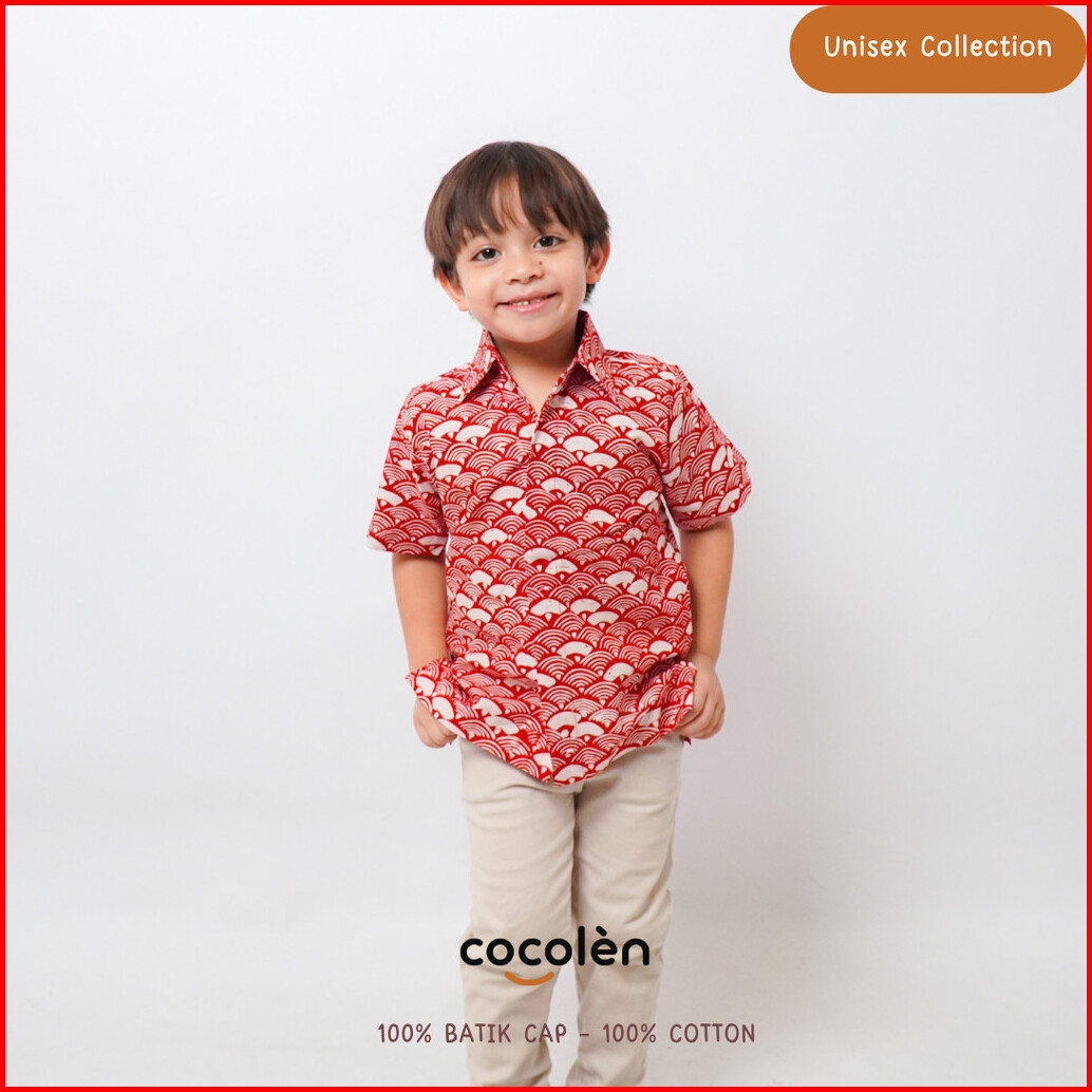 Kemeja Batik Anak Laki Cowo Cewe Umur 2-14 Tahun Merah Kb0079
