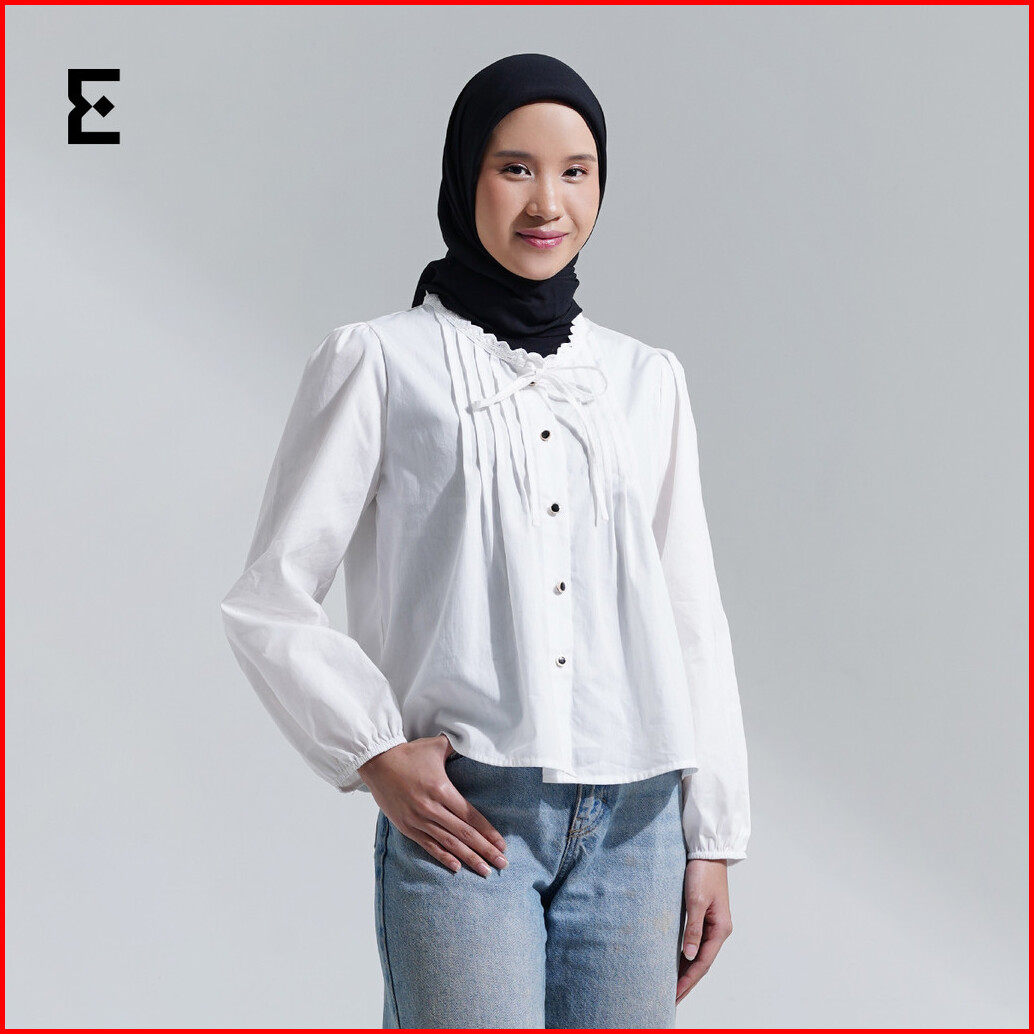 Eraya - Tania Top Atasan Pita Blouse Wanita Long Sleeve Ribbon Top - Esb010