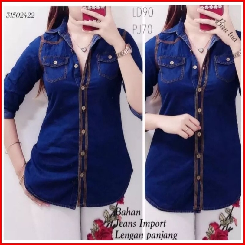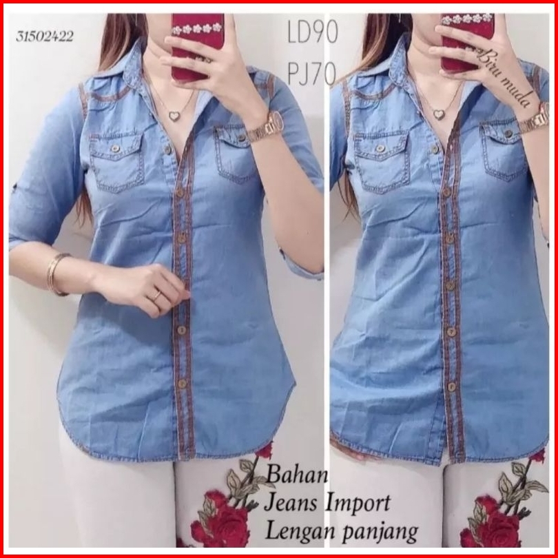 Sonia Jeans-kemeja Jeans Wanita Terbaru Atasan Lengan Panjang Sekini Kemeja Korea Terlaris