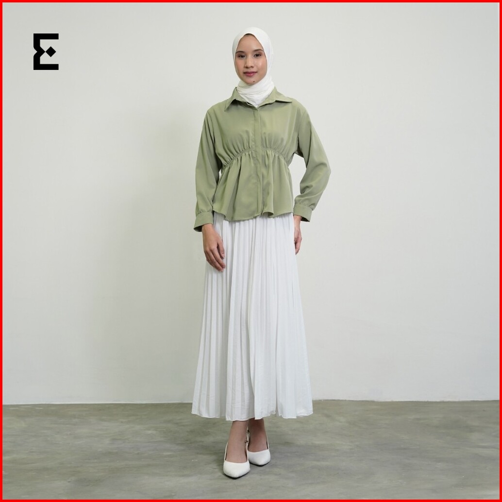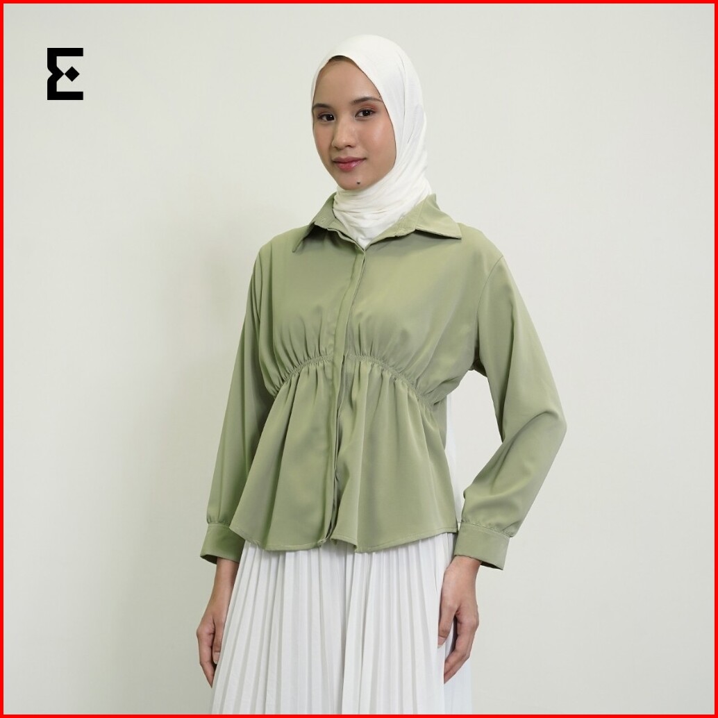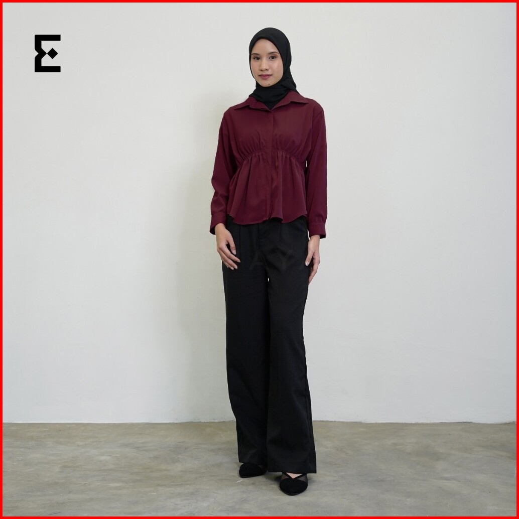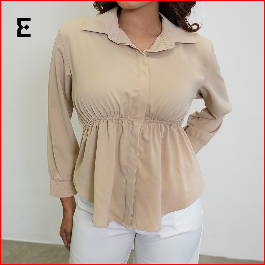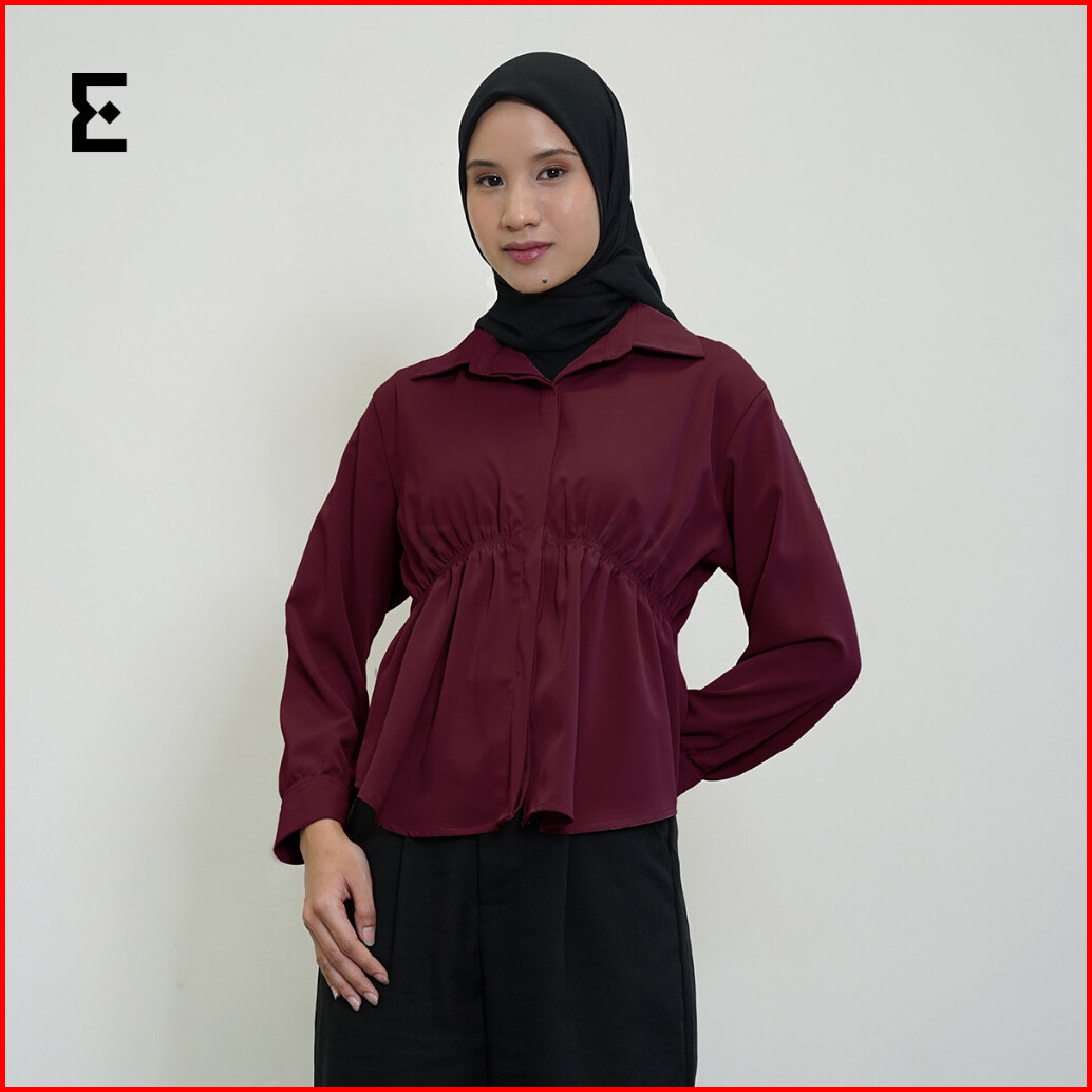 Eraya - Shania Blouse Korean Blouse Wanita Top Longsleeve Kerut - Esb003