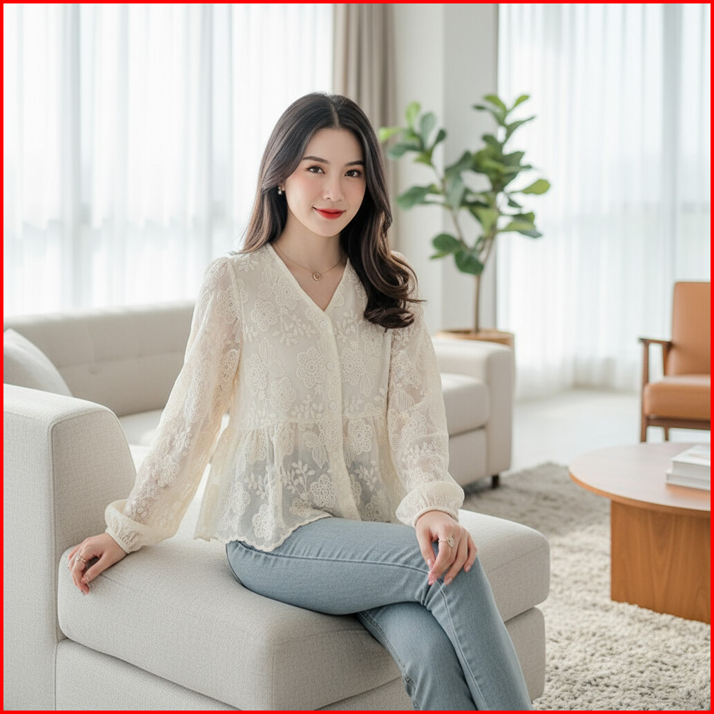 Atasan Wanita Terbaru Casual V Neck Motif Rendra M698