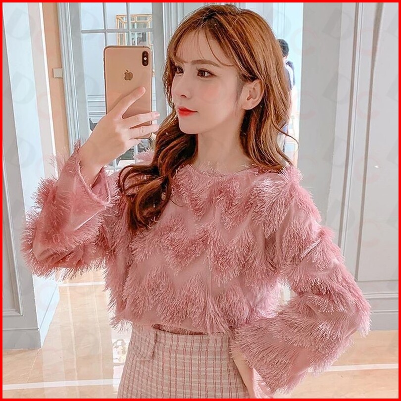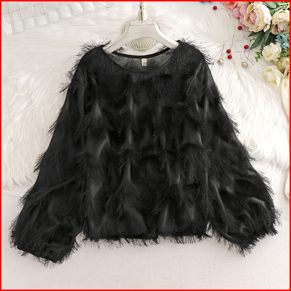 Korean Style Tasel Blouse Elegant Fringed Long-sleeved Pullover Shirt
