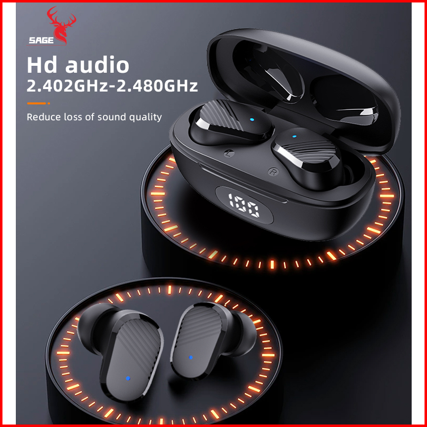Original Tws Sage G02 Headset Bluetooth Headphone Earphone Full Bass Stereo Wireless Earphone Tws Kualitas Premium Led W