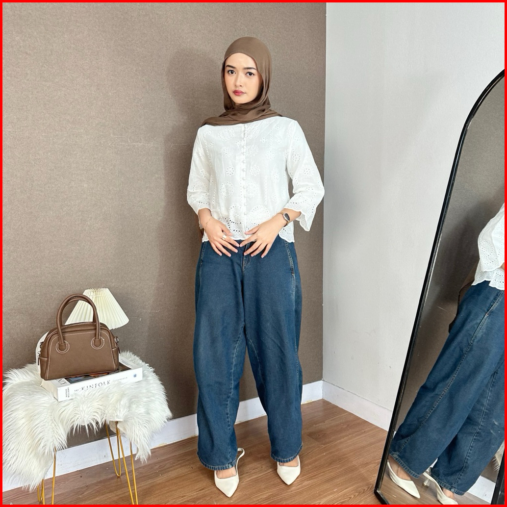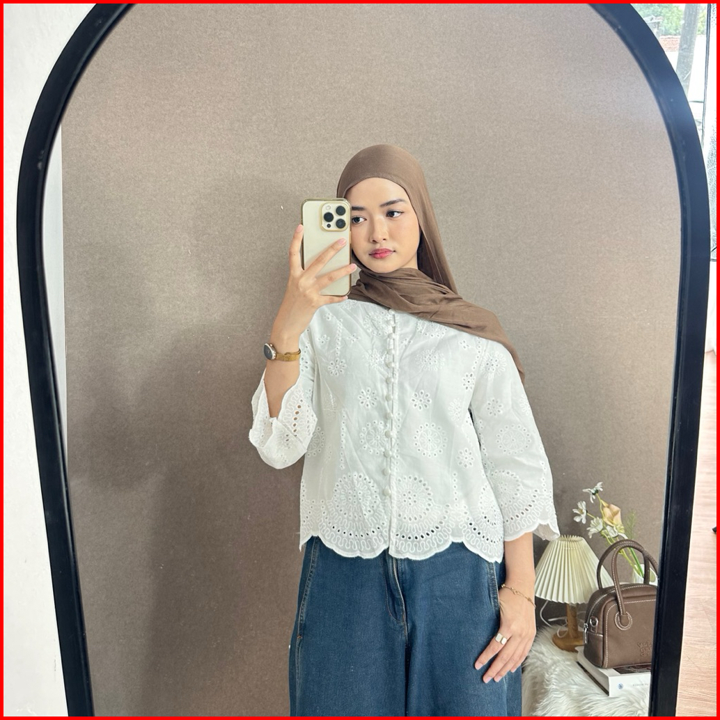 Kiwi Nikki Blouse Wanita Gaya Korean Style Kasual Bahan Katun Bolong
