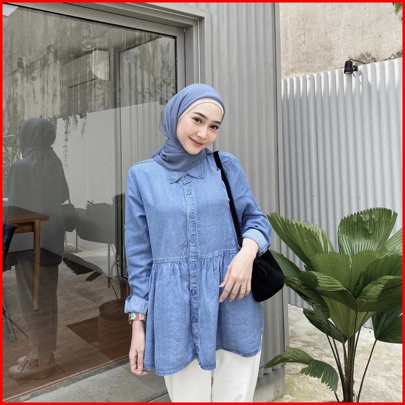 Kemeja Peplum Wanita Denim Ruffle Babydoll Anyo By Grindee