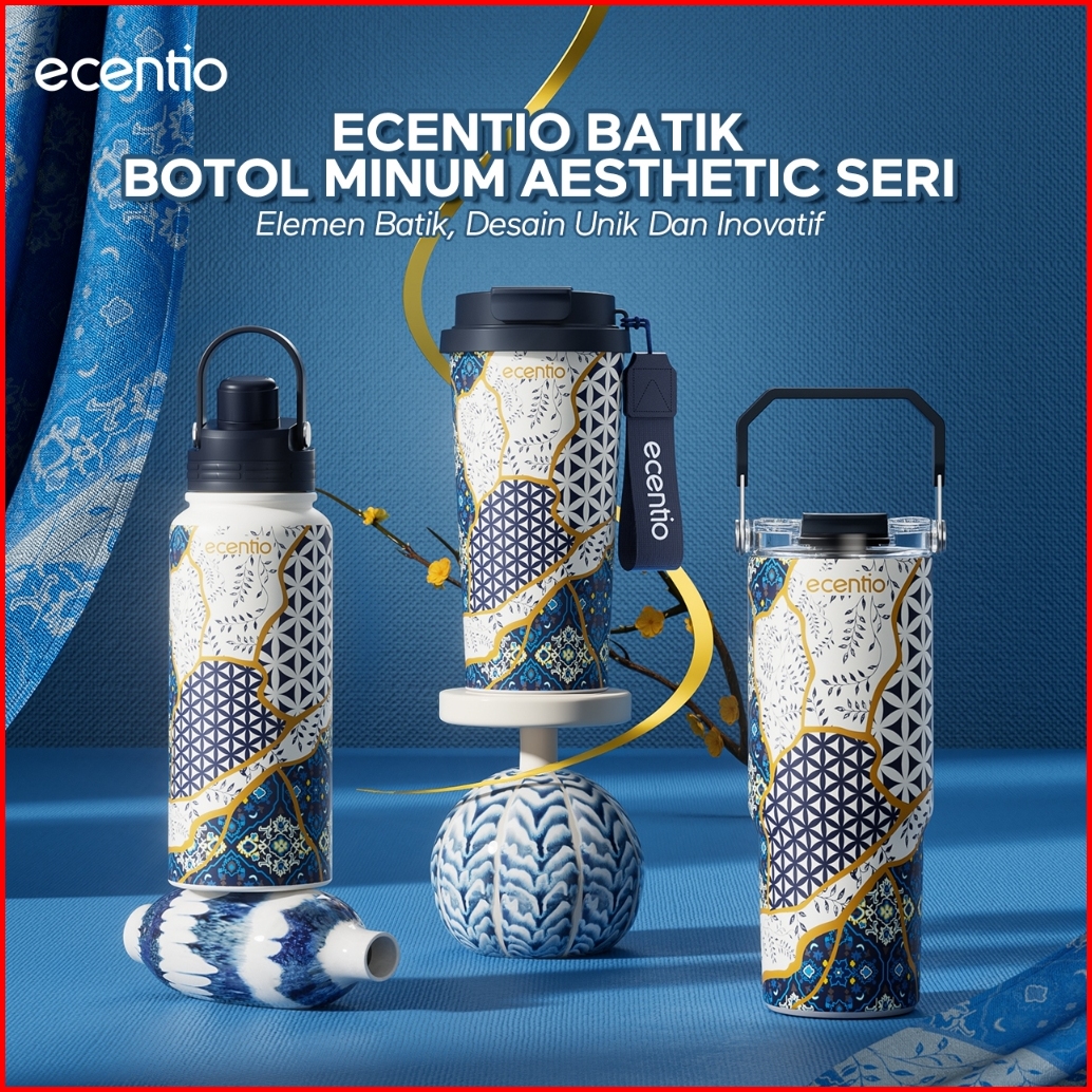 Tutup Botol Magnetik Ecentio Batik Botol Minum Tumbler Olahraga Stainless Steel 800ml Tumbler Sedotan Dengan Tutup Tahan