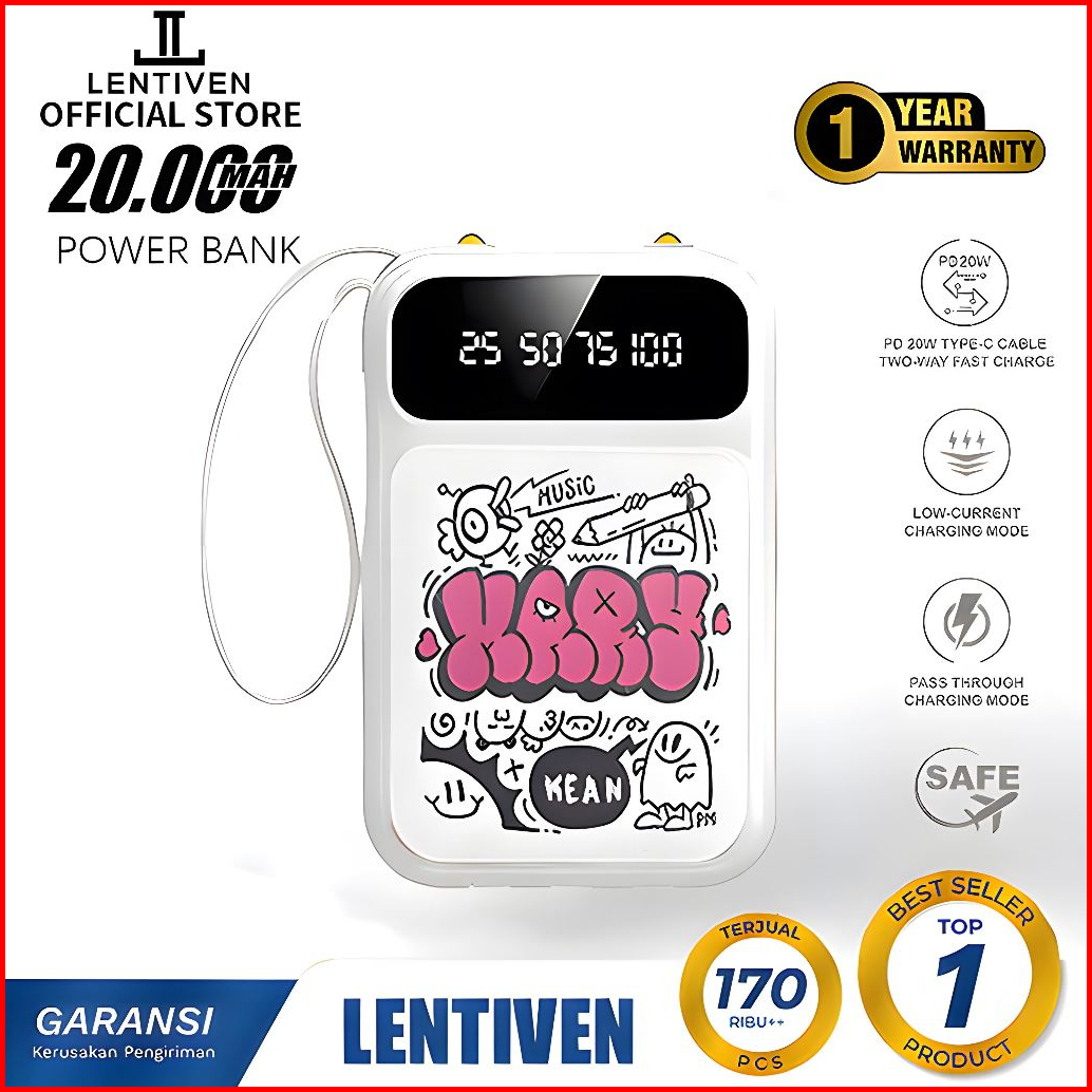 Lentiven Powerbank 20000mah Mini Size With 4 Usb Fast Charging Dual Output Led Display Bh27