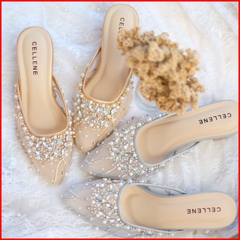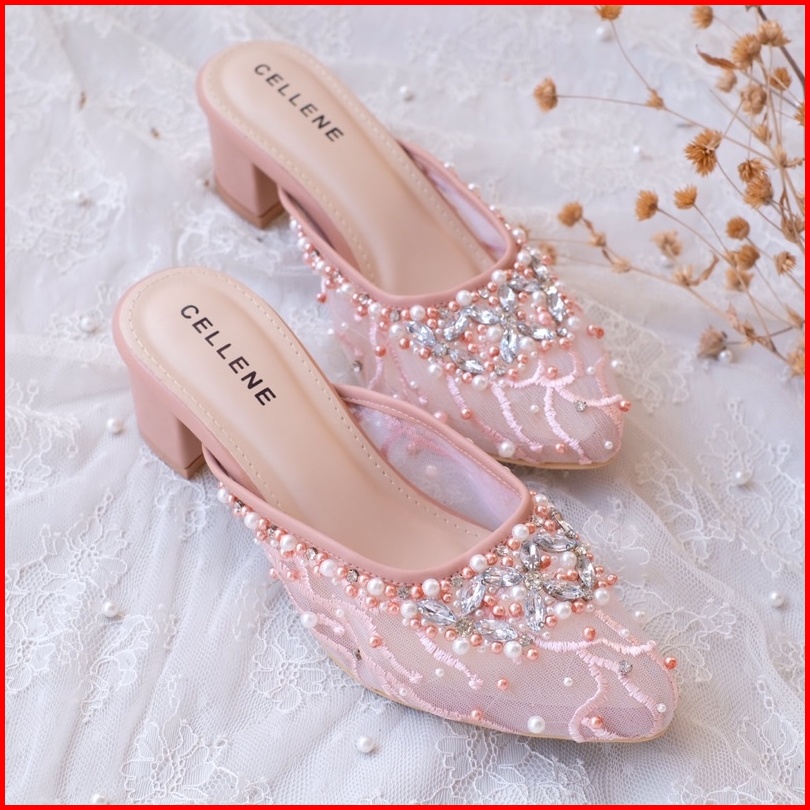 Cellene Kala Beads Heels 4 Warna Wedding Shoes Payet 5cm