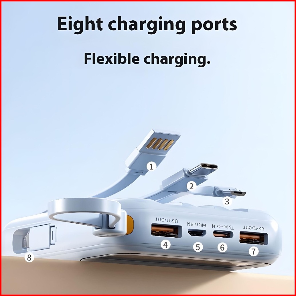 Lentiven 20000mah Powerbank Mini Fast Charging 4 Kabel Lightning Type C For Iphone Android Bh263