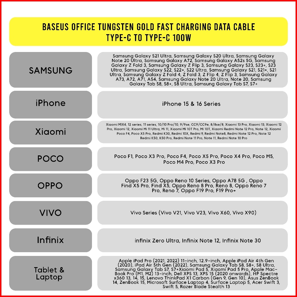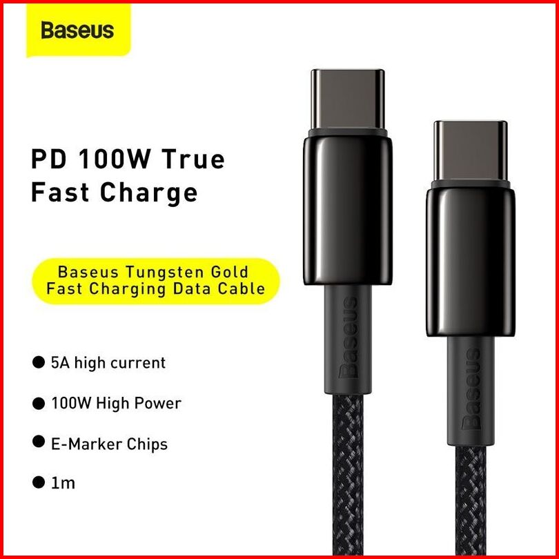 Baseus Tungsten Fast Charging Data Cable Type-c To Type-c 100w 1m 2m Black