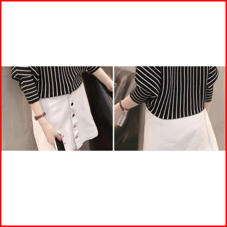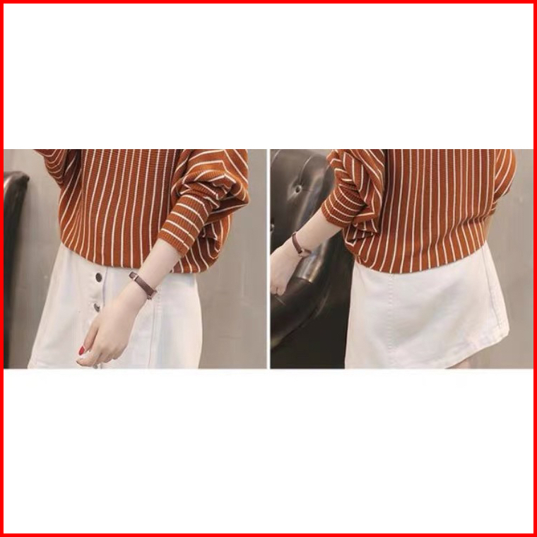 Atasan Rajut Wanita Salur Batwing Baju Rajut Wanita Stripe Kaos Import Wanita Lengan Panjang