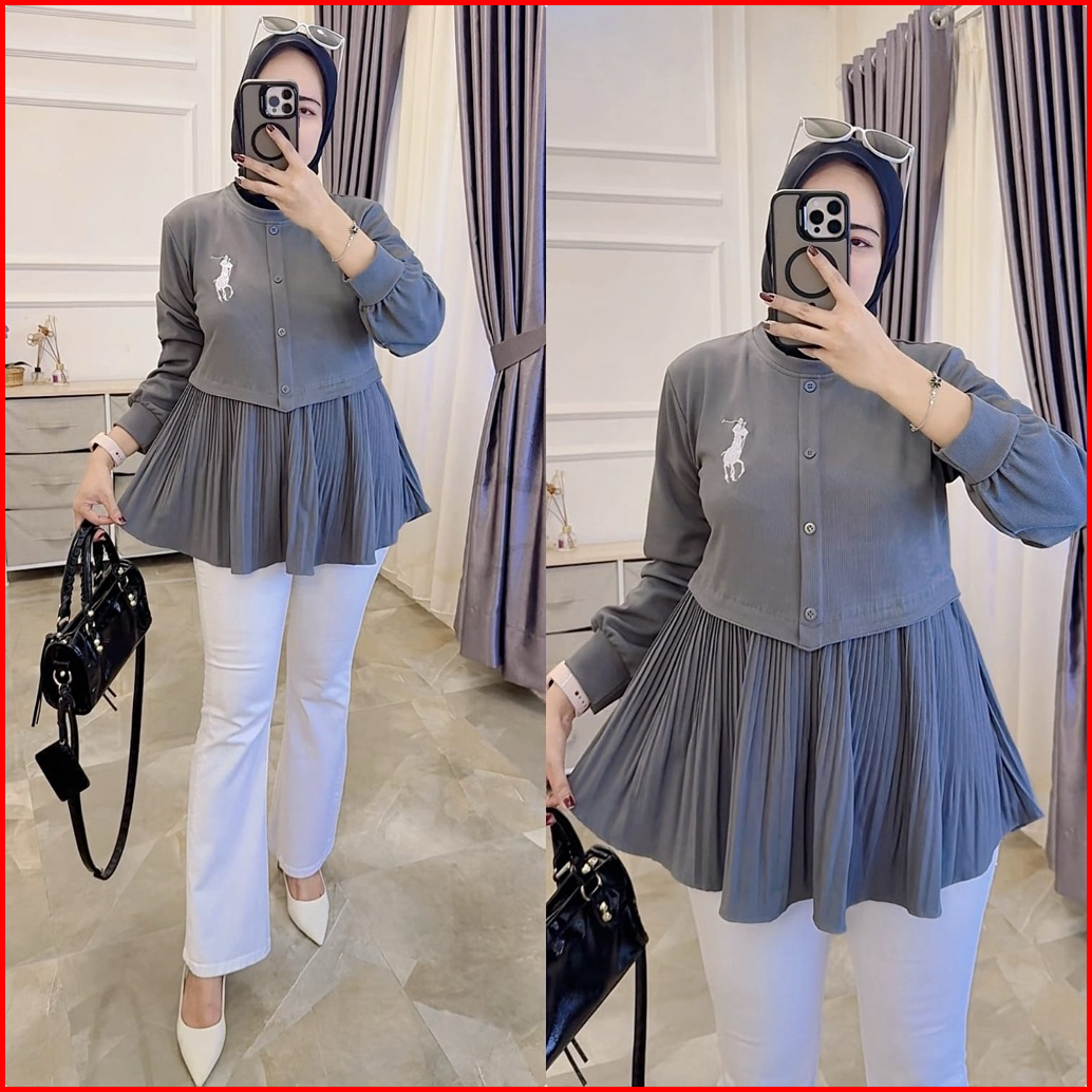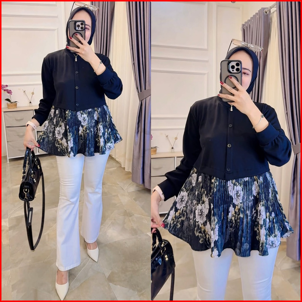 Kansya Blouse Blouse Wanita Trandy Atasan Model Terbaru Blouse Knit Combinasi Crincle Premium