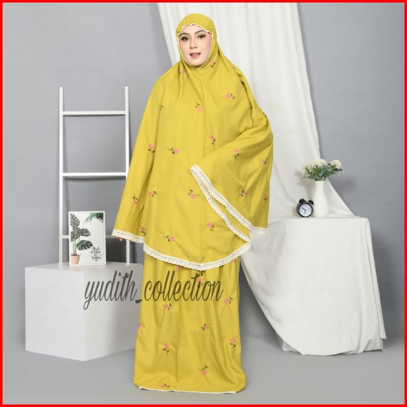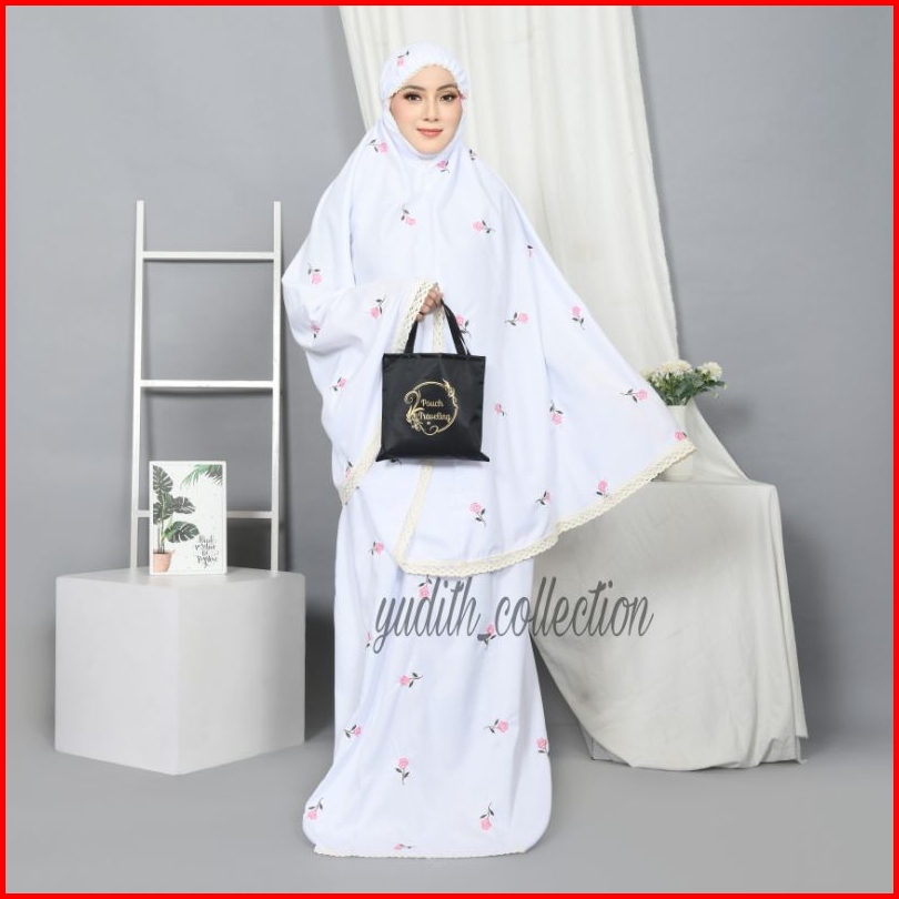 Yudith - Mukena Dewasa Bordir Bunga Aster Katun Premium Free Tas Pouch Cantik