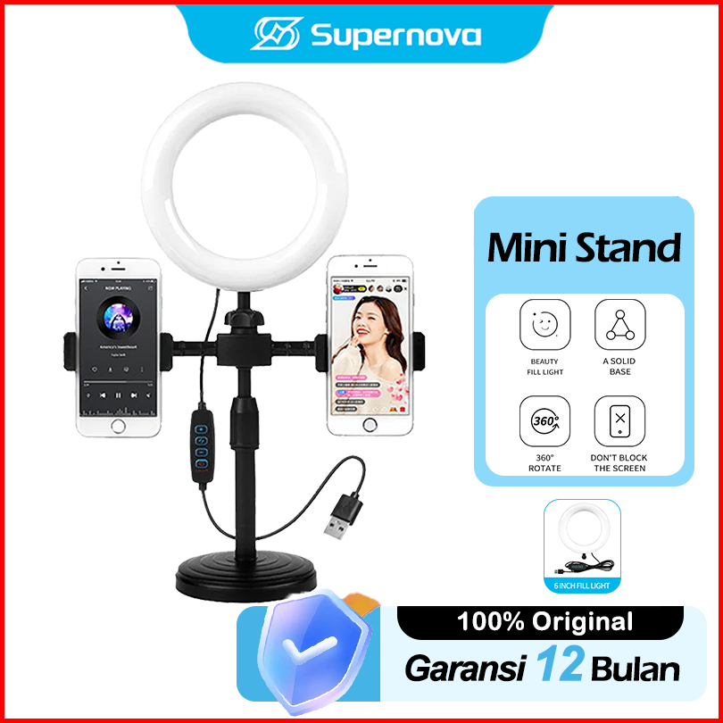 Supernova Ring Light 16cm Tripod 2 Holder Hp Ring Light Tripod Mini Stand Hp Stream Selfie Make Up Vlog Lampu