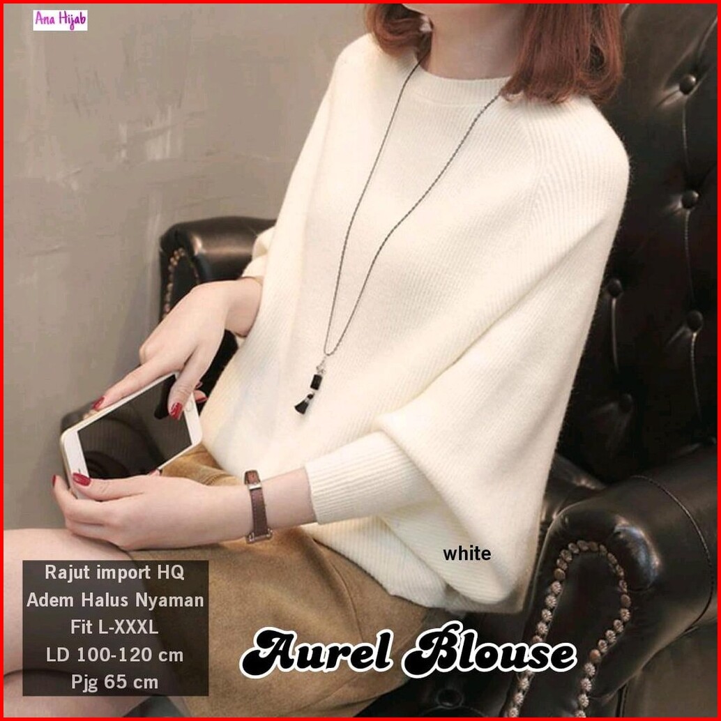 Aurel Blouse Atasan Rajut Import Polos Batwing Stretch Tebal