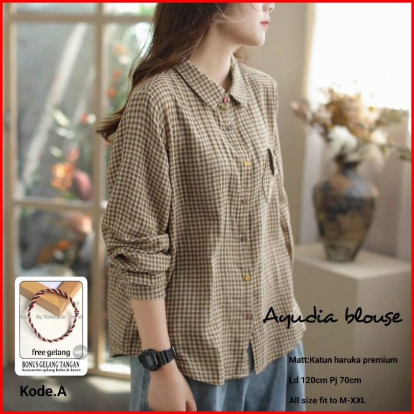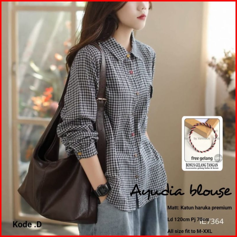 Ayudia Blouse.kemeja Jumbo Wanita Lengan Panjang Dewasa.blouse Korean Jumbo Terbaru.baju Wanita Murah Kekinian. Free Gel