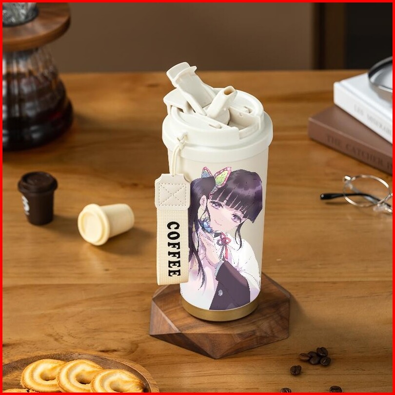 Demon Slayer Kanao Tsuyuri Tumbler Coffee Mug Stainless Steel Dengan Tali Cup 500 Ml Hadiah Berharga Untuk Orang Terkasi