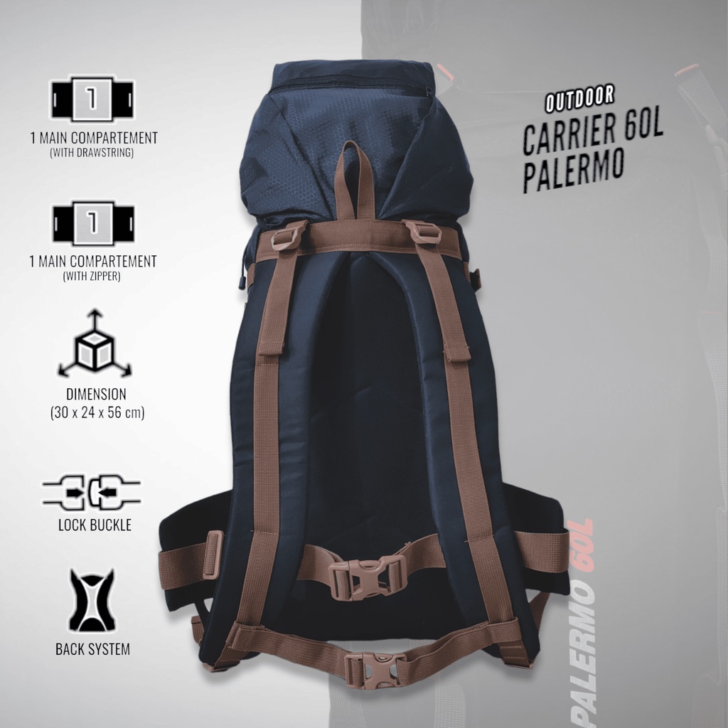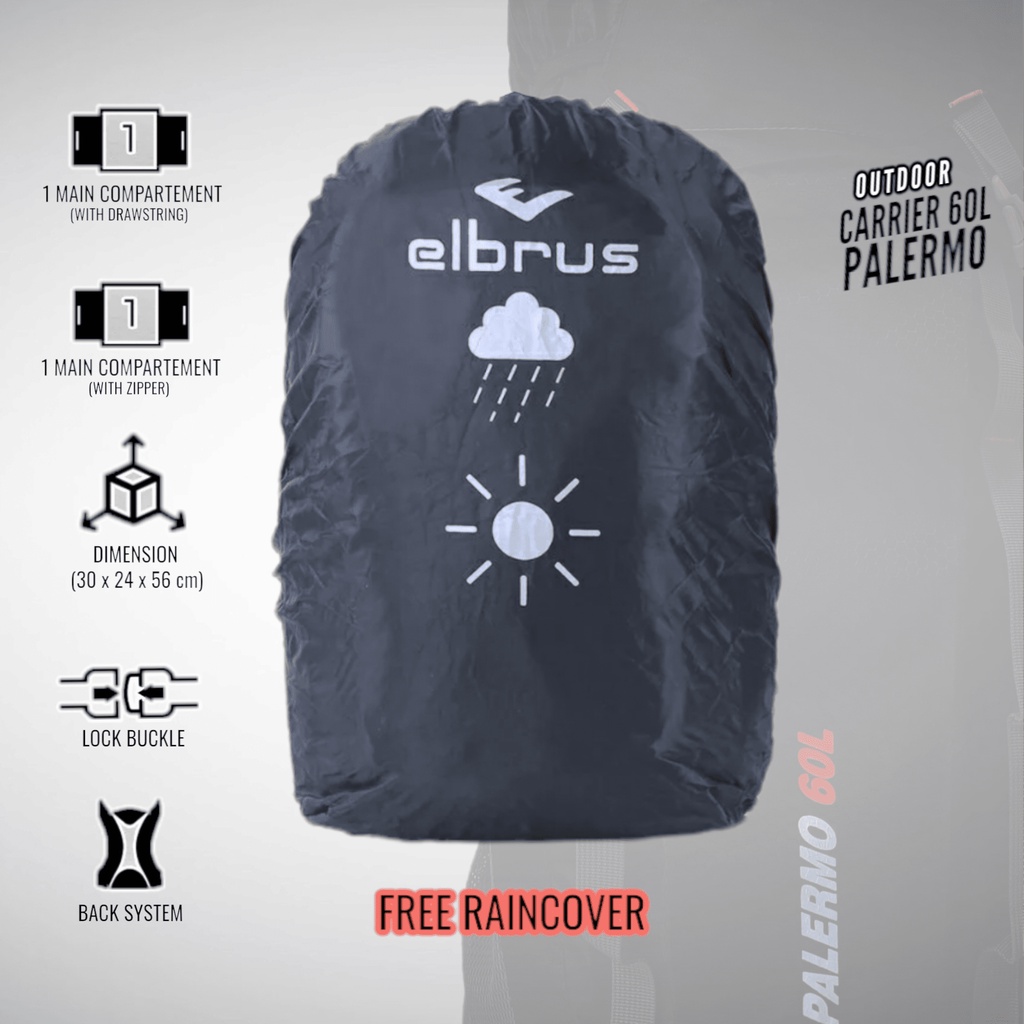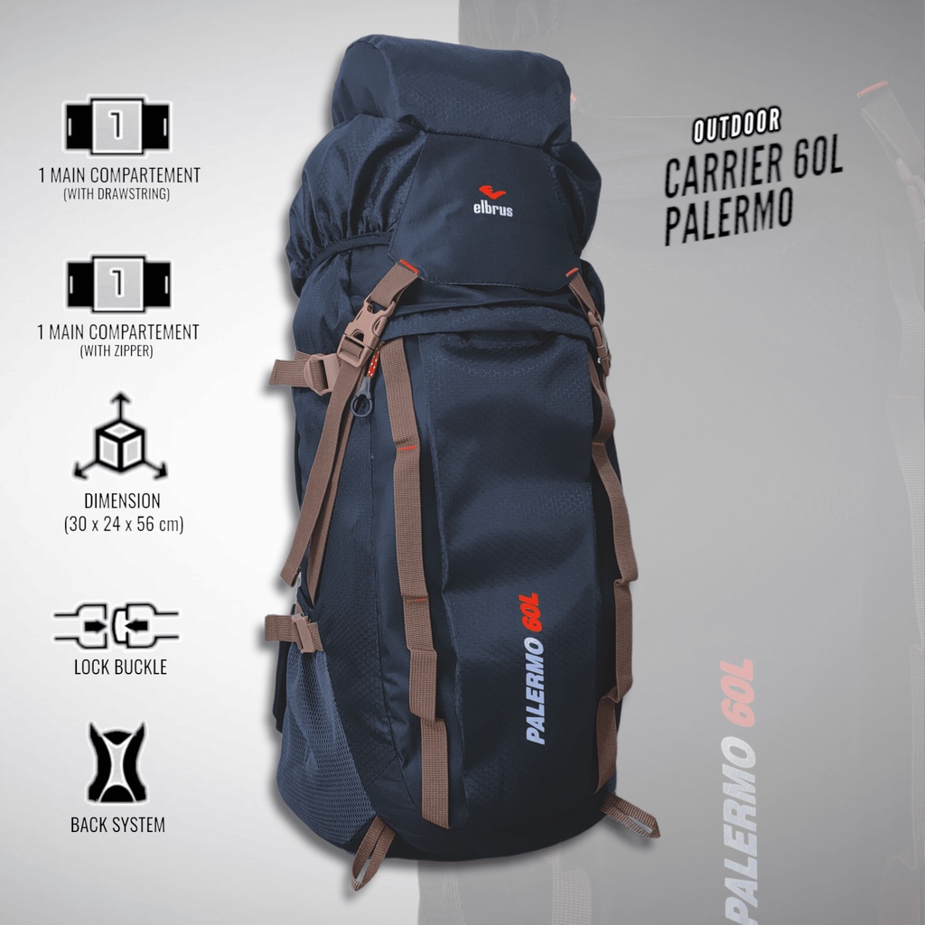 Tas Ransel Gunung Camping Outdoor Backpack 60 Liter Tas Keril Elbrus Palermo