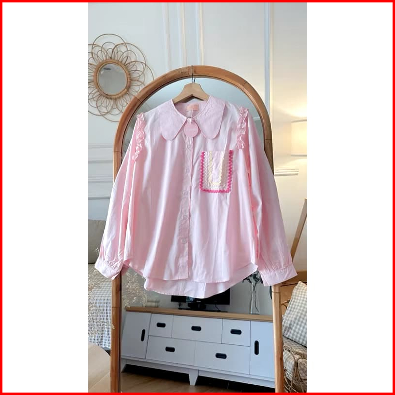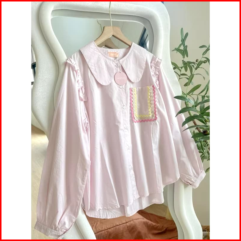 Atasan Kemeja Wanita Katun Poplin Lengan Panjang - Kemeja Blouse Wanita - Atasan Wanita Basic