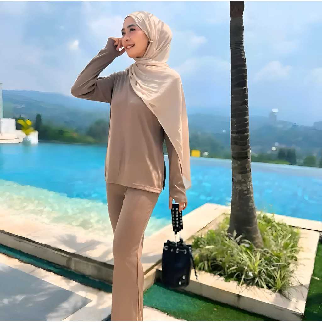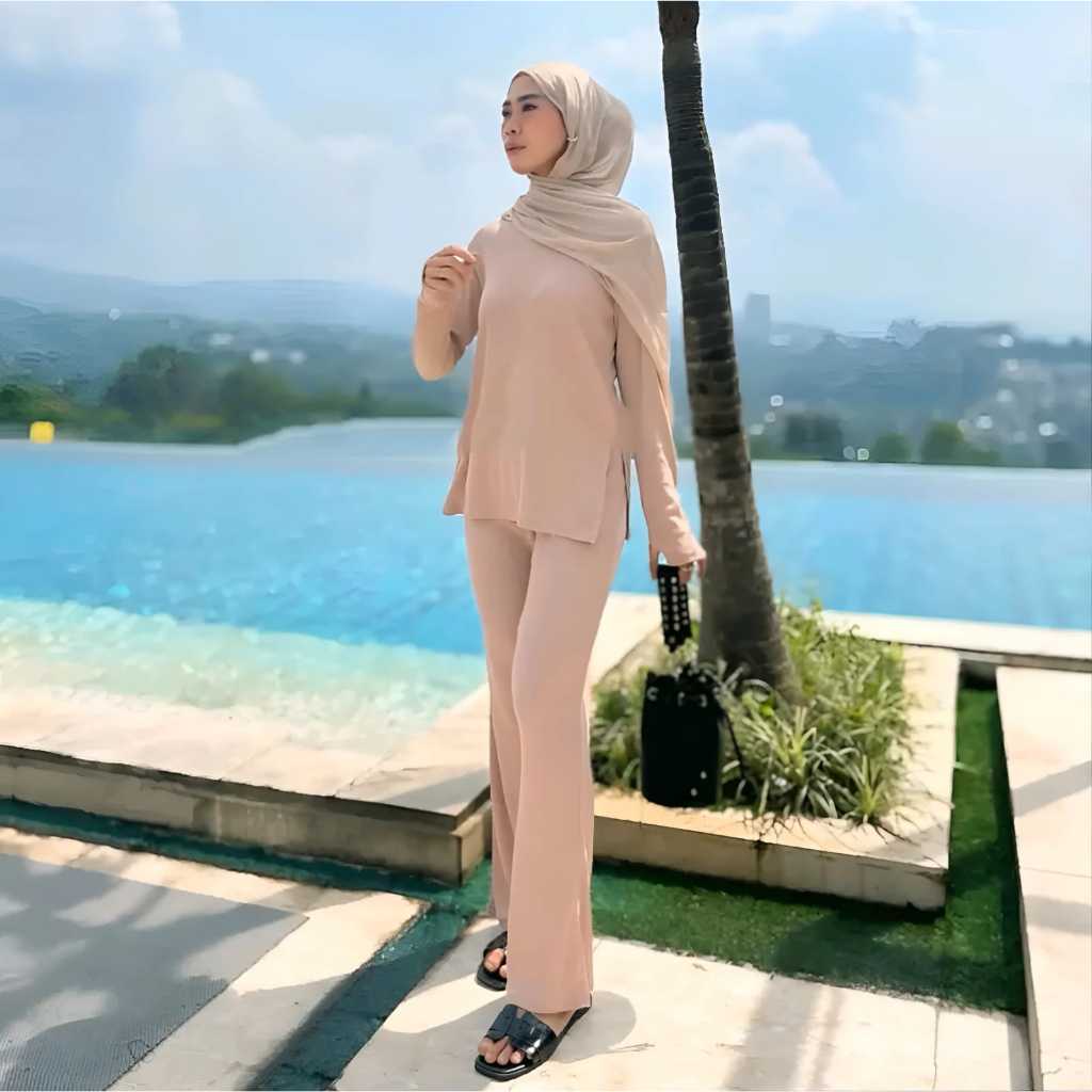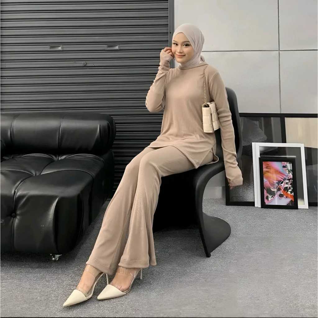 One Set Wanita PENE SET Setelan Rib Knitt Model Cutbray Terbaru Setelan Wanita Kekinian One Set Knit