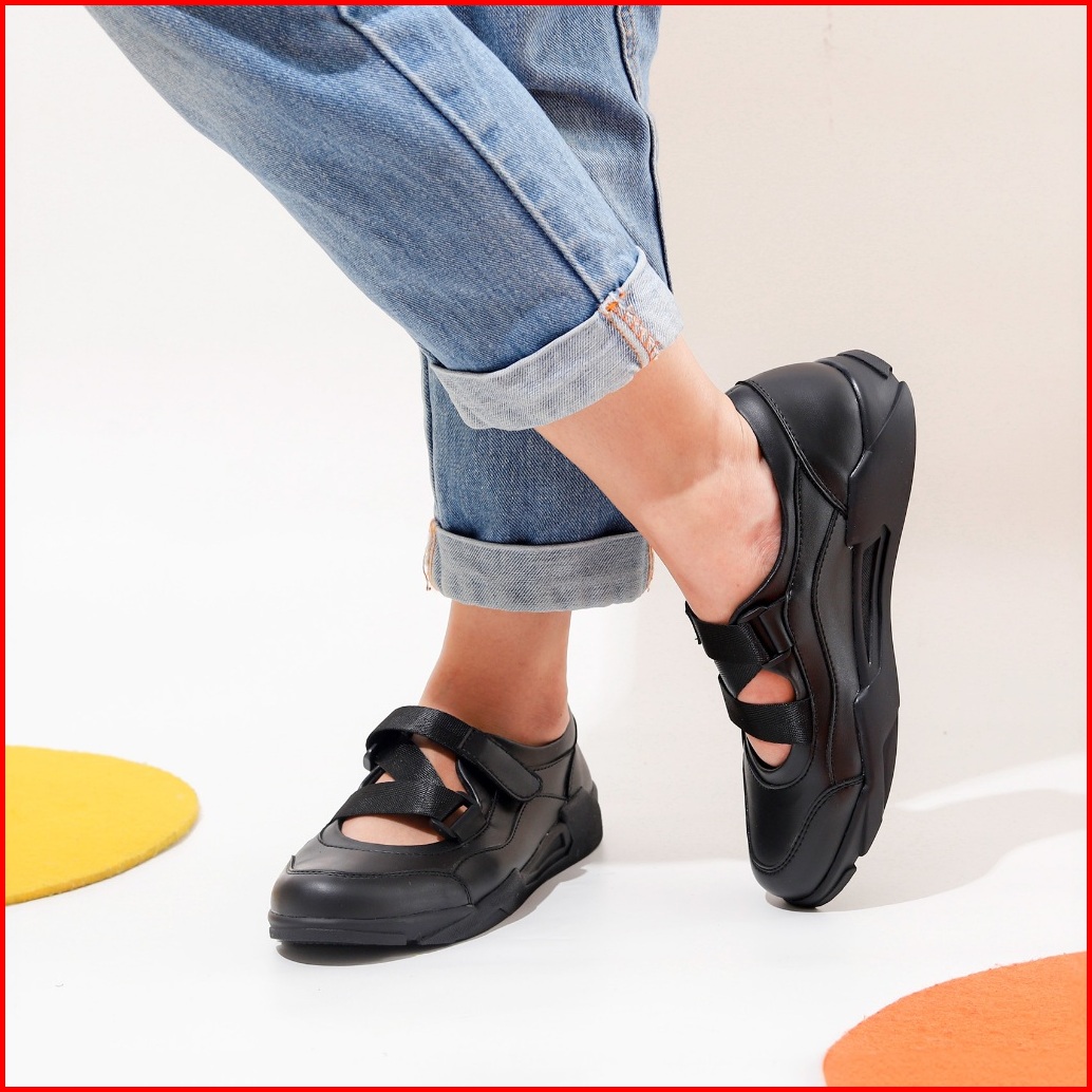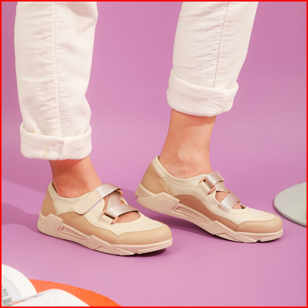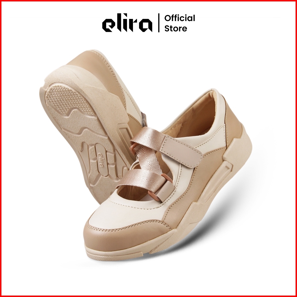 Elira Sepatu Perekat Sneakers Timi Cream Pink Black White Strap Shoes Women