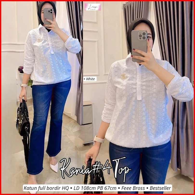Denia Kemeja Blouse Wanita White Series Bahan Katun Bordir Premium Kekinian Terbaru Asli Cantik