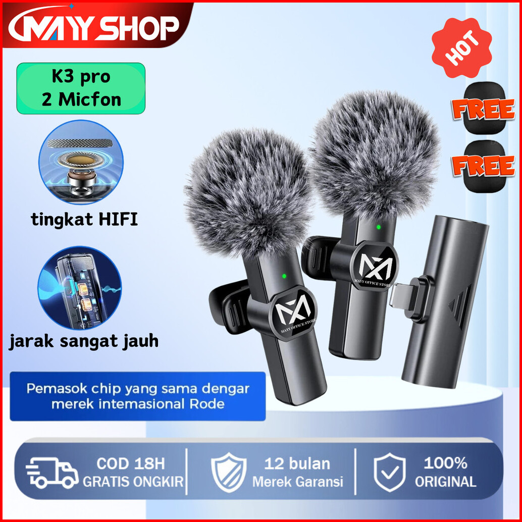 Mayy Id K3 Pro 2 Mic Wireless Clip On Microphone Mikrofon Lavalier Hp Plug Play