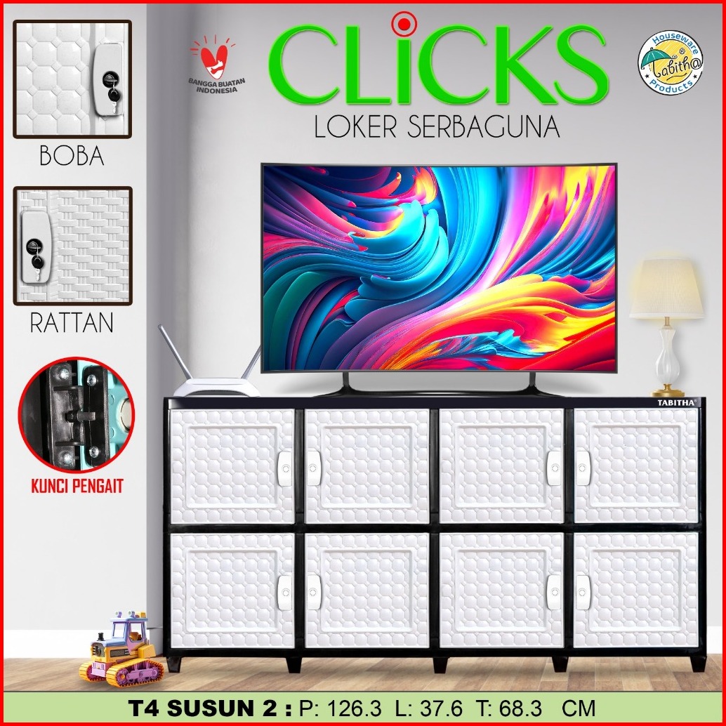 Lemari Pakaian Plastik Tabitha Clicks Tower 4 Rotan Boba Printing 8 Pintu 12 Pintu Murah Kokoh Tebal