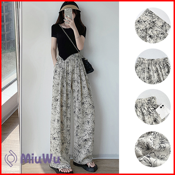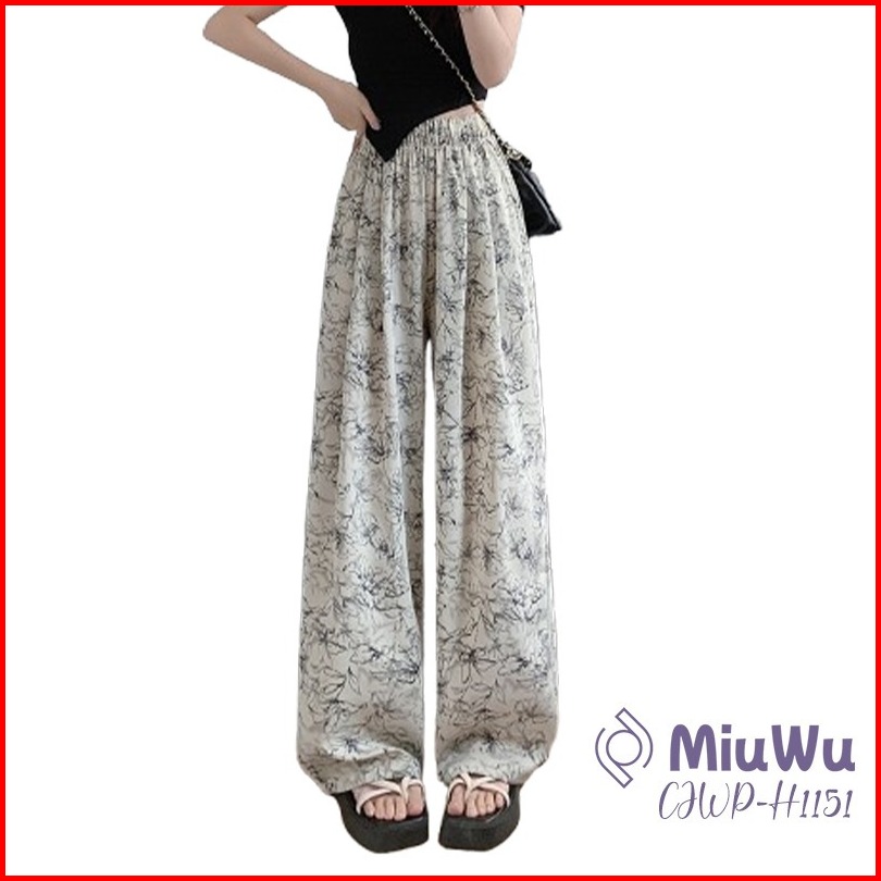 Miuwu Celana Kulot Highwaist Tiedye Flower Korean Look Loose Pants Highwaist H1151