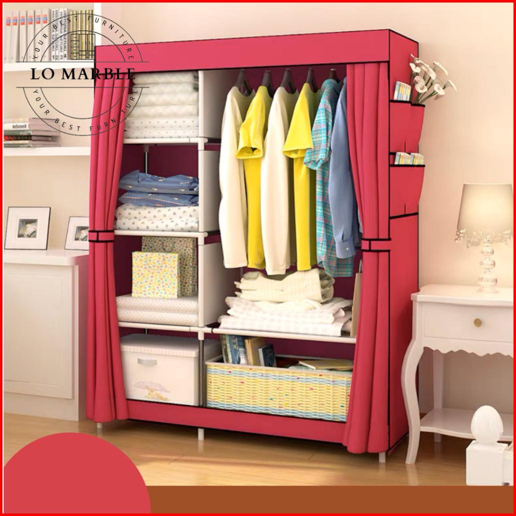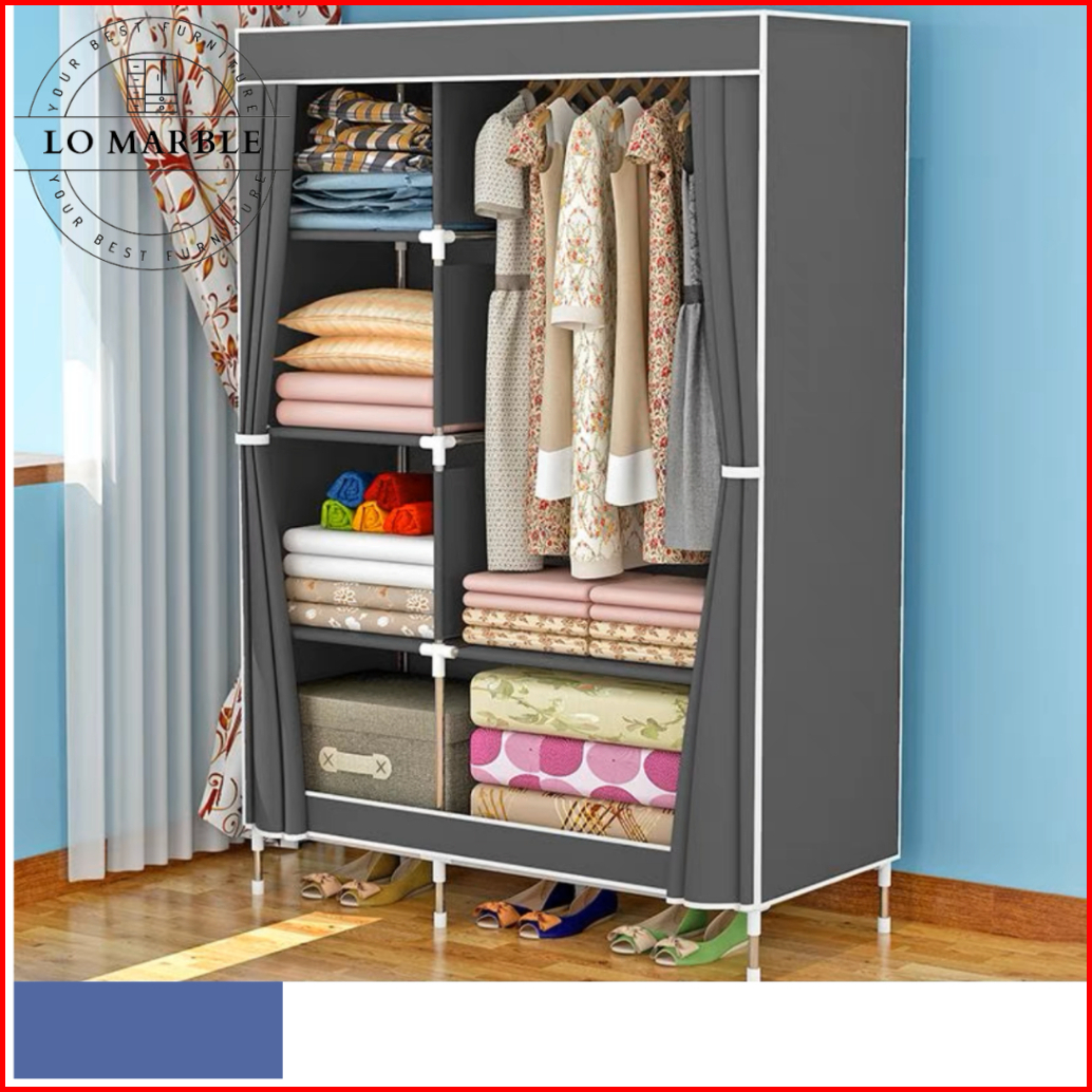 Rak Lemari Pakaian Rak Baju Dengan Tutup Resleting Lemari Kain Plastik Portable 105nt