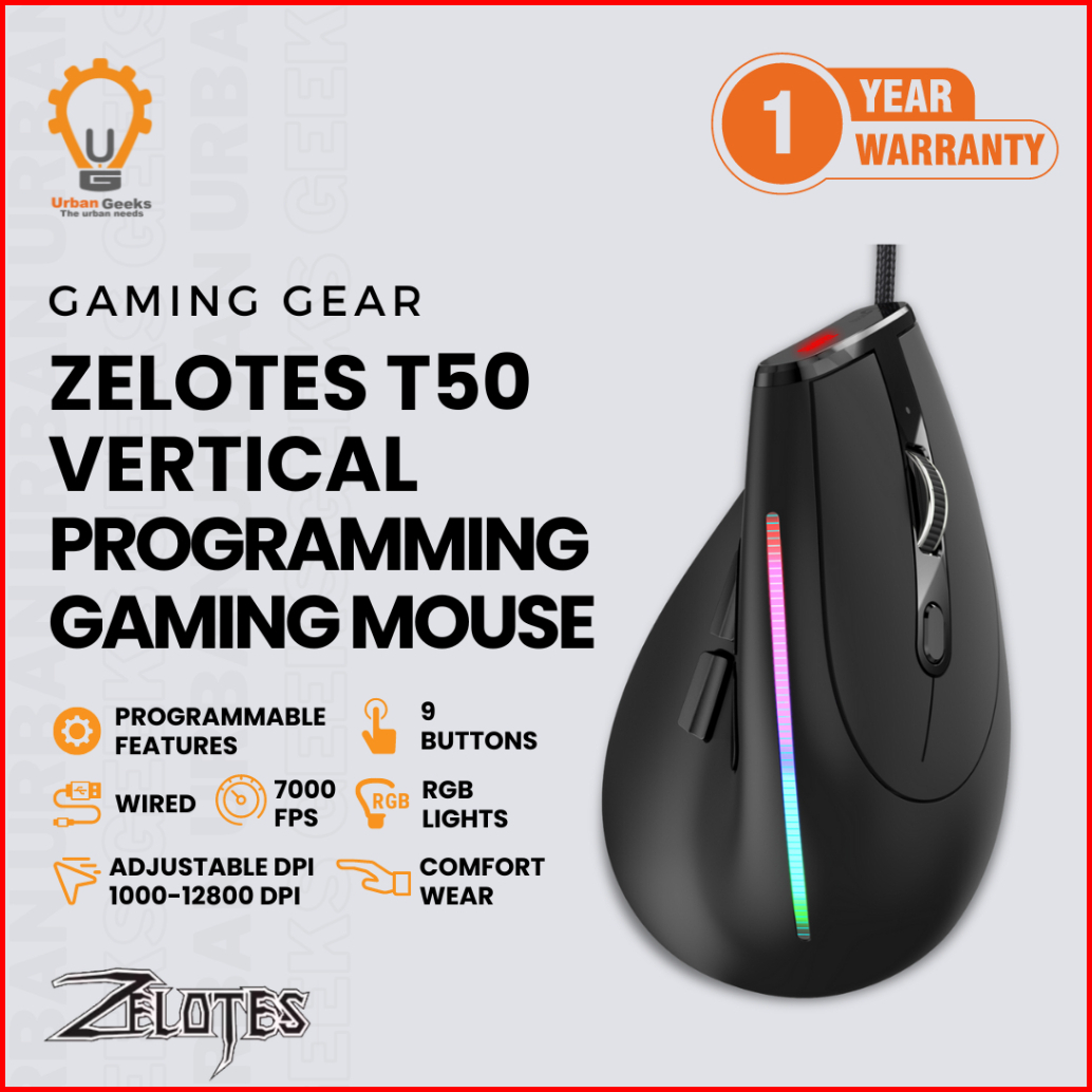 Zelotes T50 Vertical Mouse Ergonomicprogrammable 3200 Dpi 7 Button