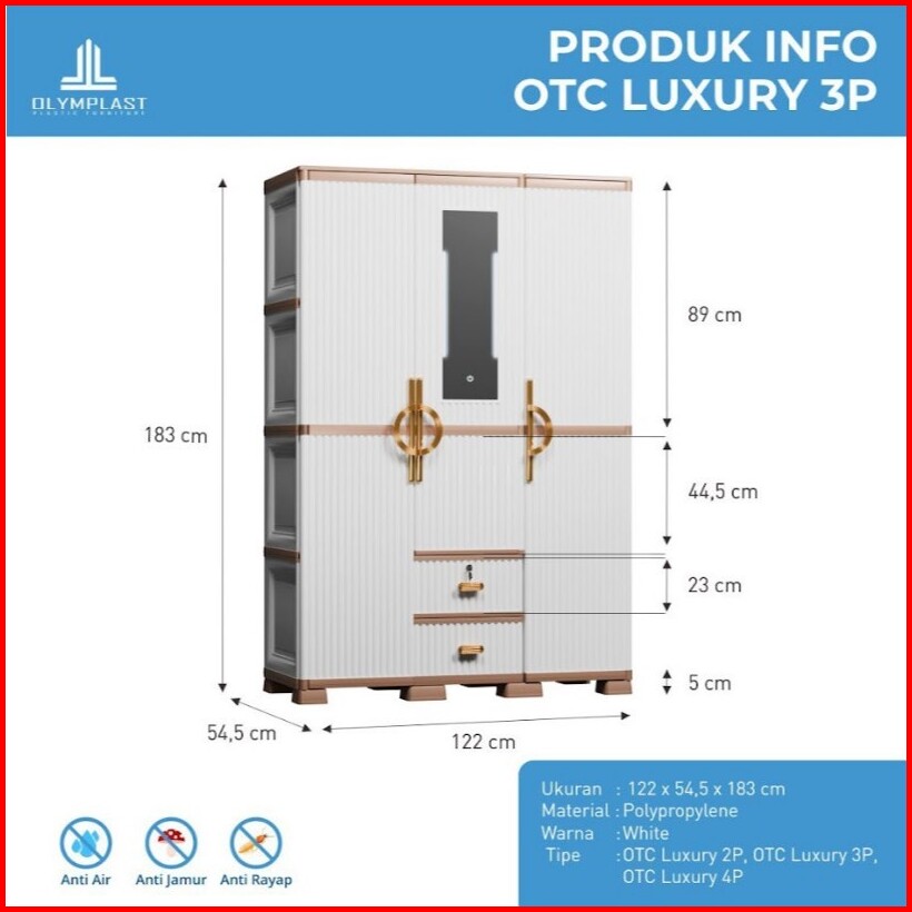 Olymplast Otc 3pl St2 Luxury Lemari Pakaian Plastik Lemari Pakaian Mewah Lemari Pakaian 3 Pintu