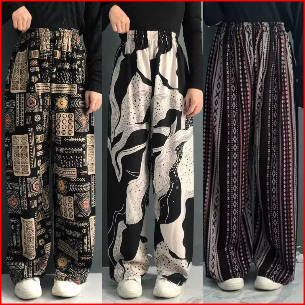 Graceva - Promo Bundling 100rb Dpt 3pcs - Celana Kulot Hommy Panjang Wanita Bahan Rayon Viscose Motif