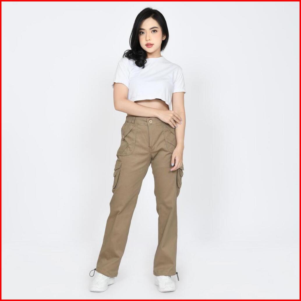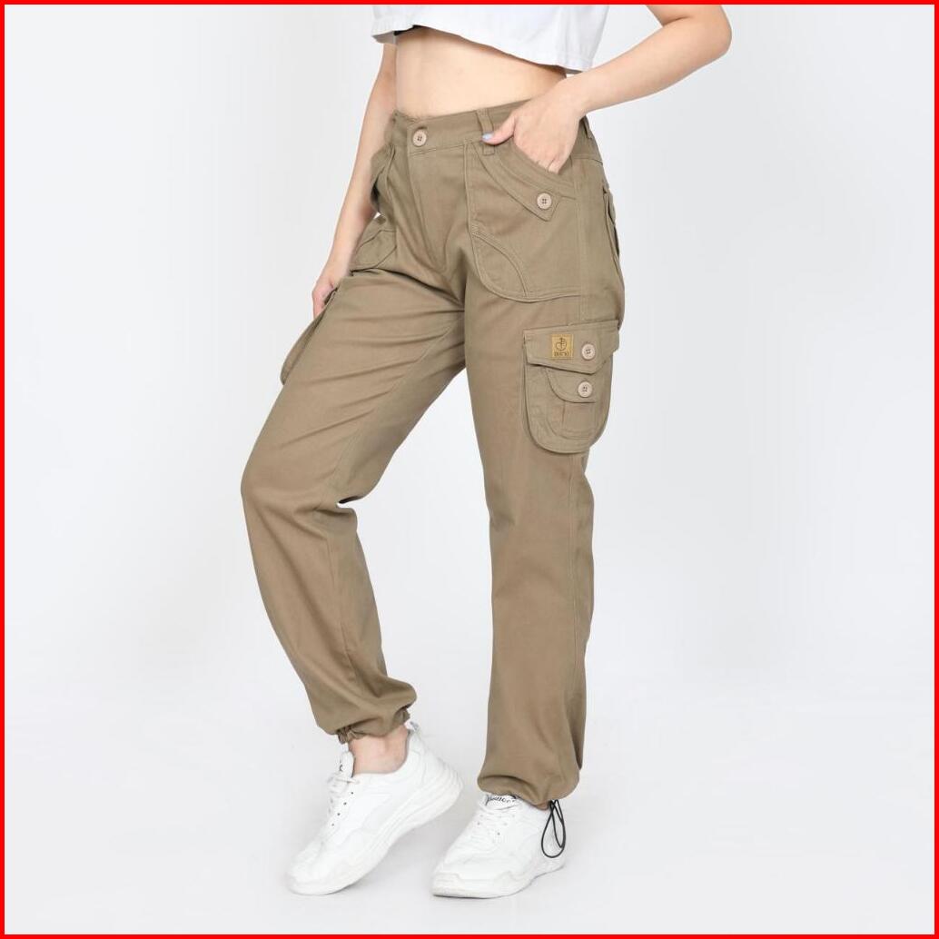 Duc 61 - Celana Panjang Cargo Tali Outdoor Wanita - Celana Panjang Wanita Mocca