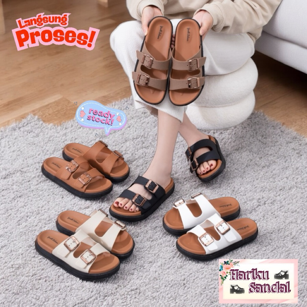 Sandal Wanita Jelly Empuk Strap 2 Buckle Trendi Import Premium 225-X2 | HARIKU SANDAL