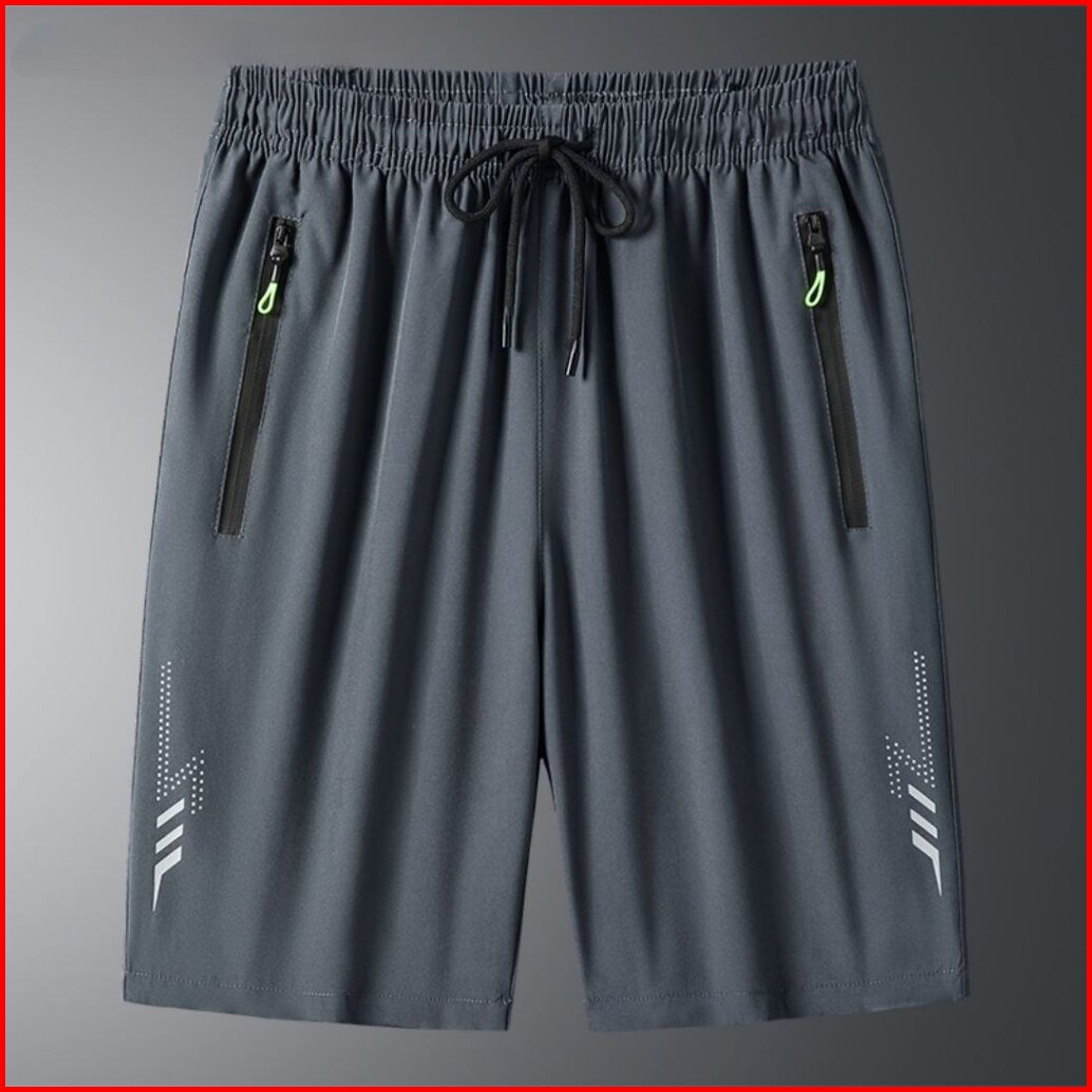 Celana Pendek Gym Pria Elastis - Resleting Premium Quick Dry Lari Badminton All Size M-xxl - Hitam Navy Abu