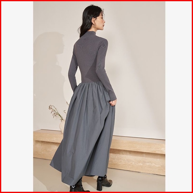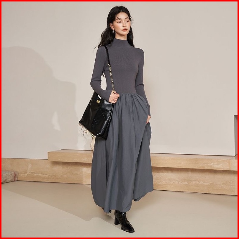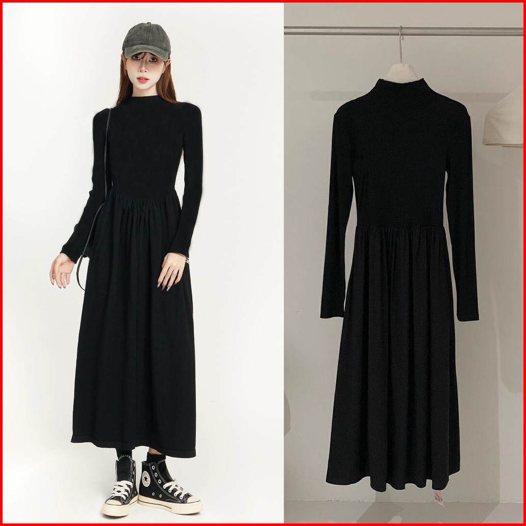 Smocked Dress Korean Long Dress Casul Dress Hitam Dress Maxi Turtleneck Polos Bigsize Dress Muslim 2025 Terbaru