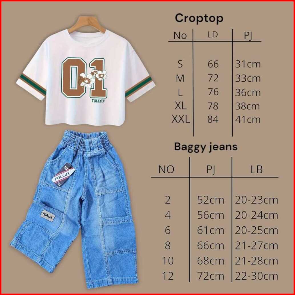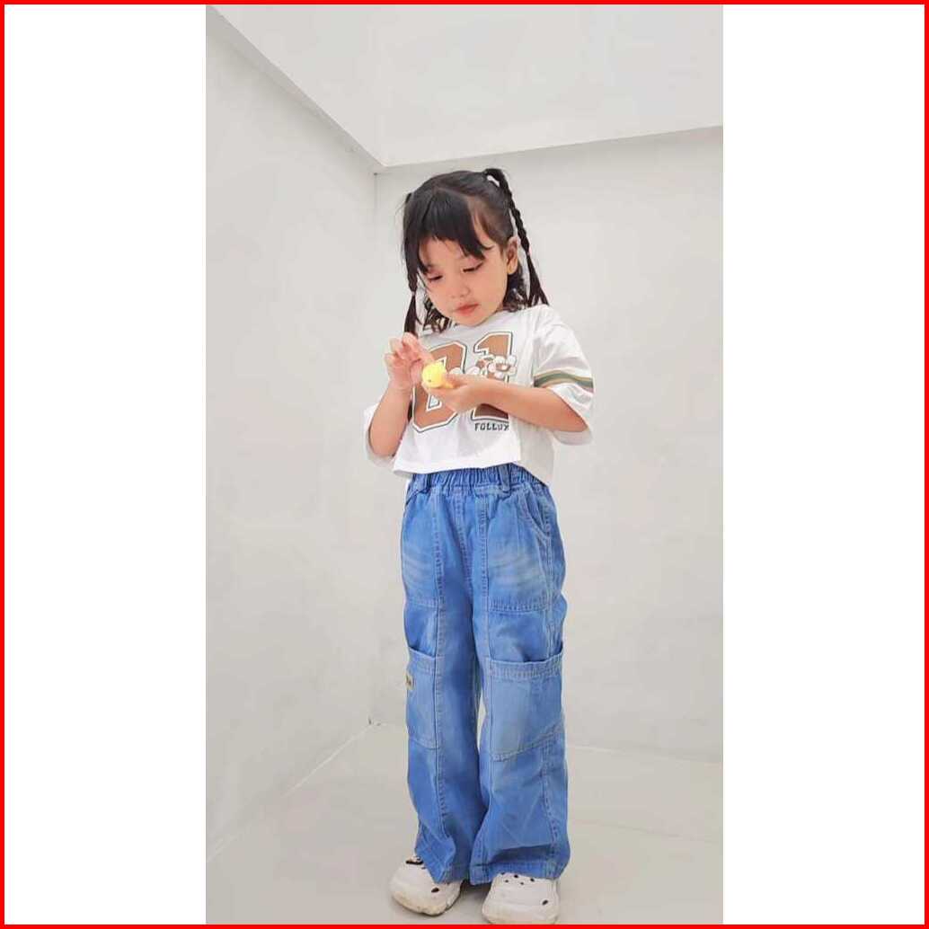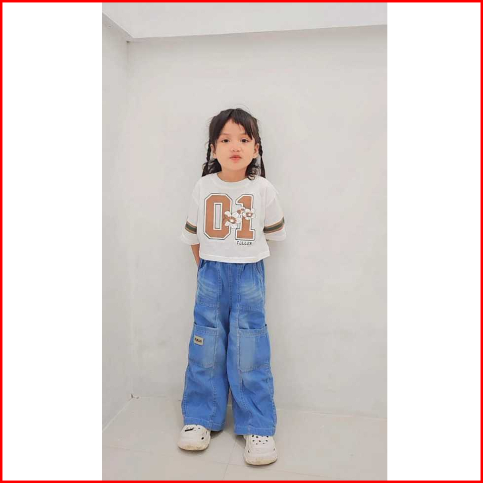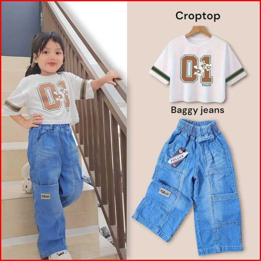 Follux - Setelan Anak Perempuan Croptop Loose Baggy Jeans 1-9 Tahun