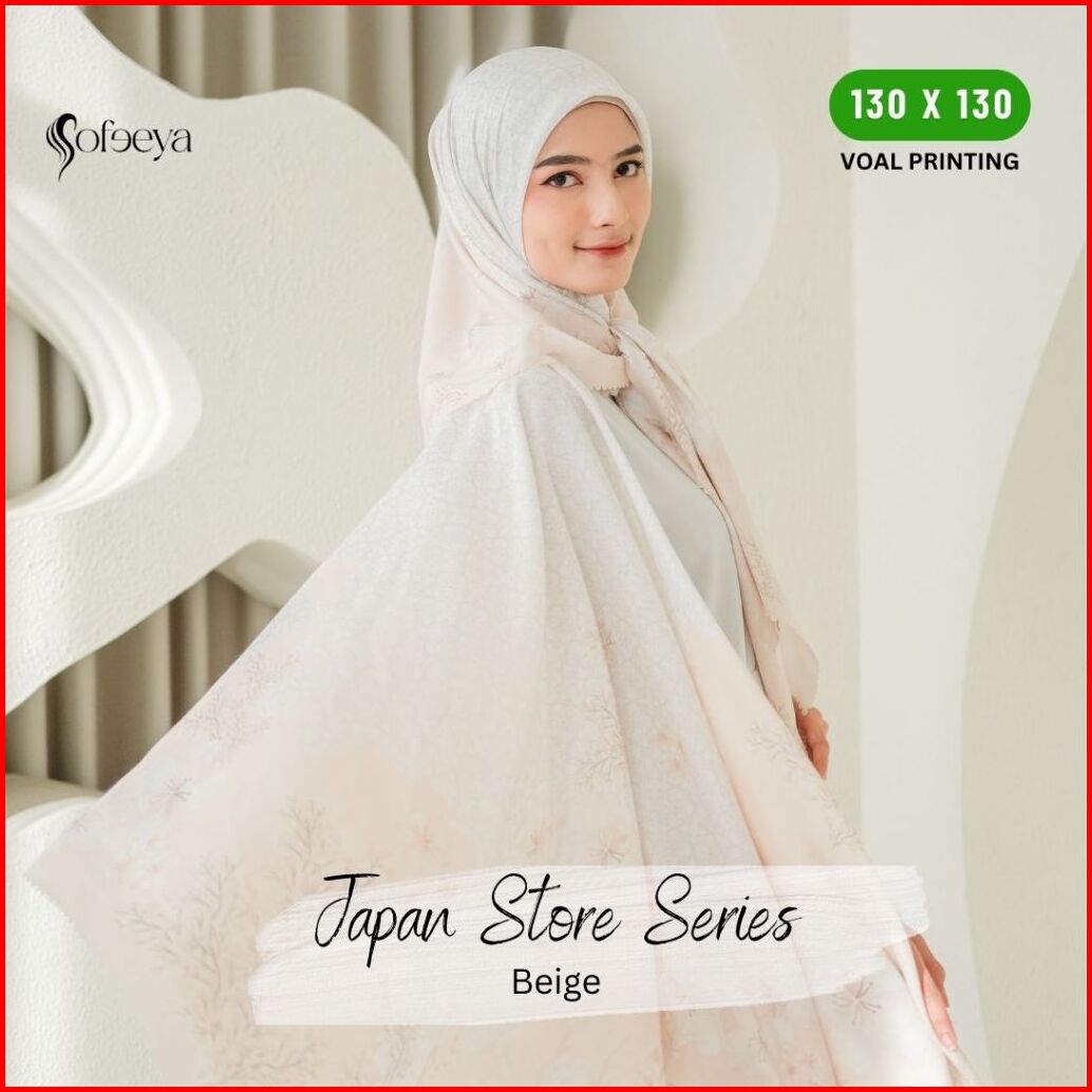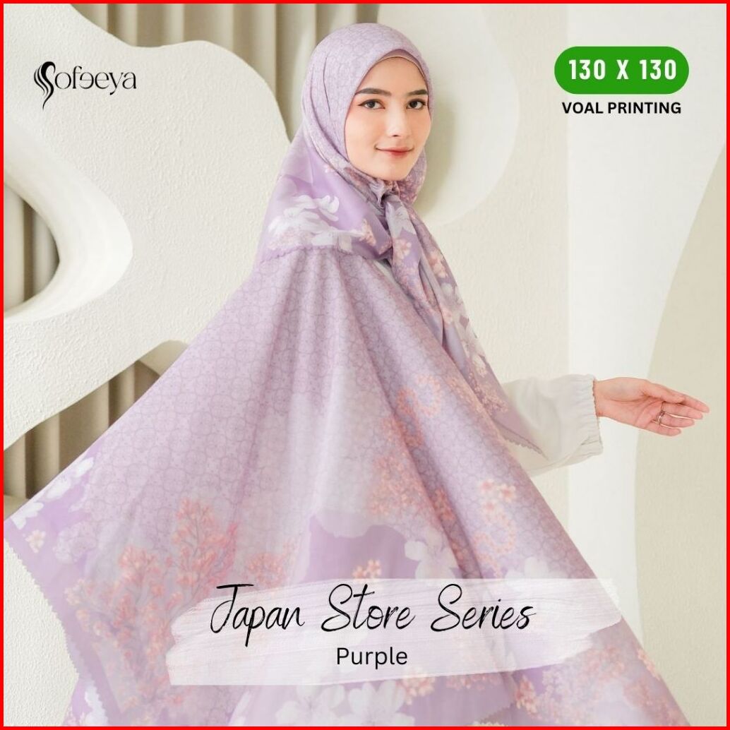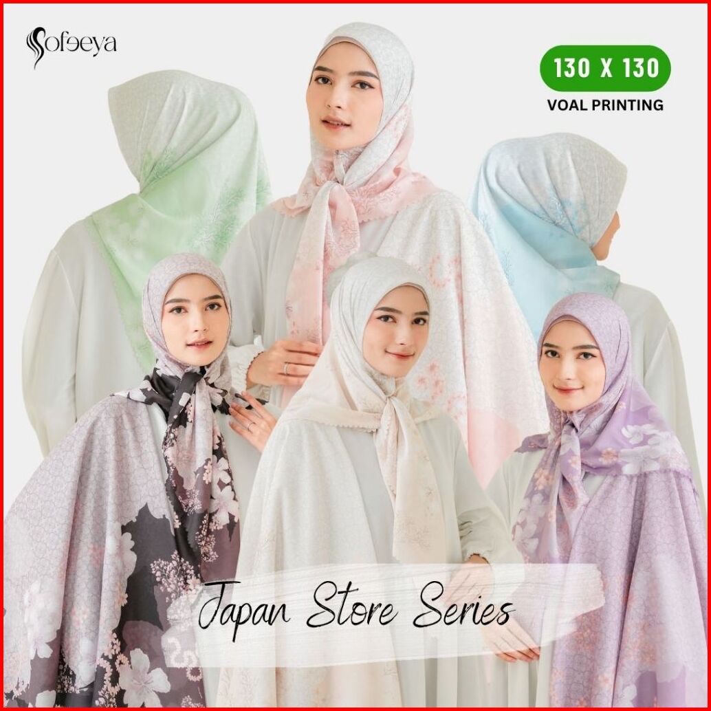 Sofeeya - Hijab Segi Empat Voal Motif Printing Japan Store Series Ukuran Syari Jumbo 130 X 130 Cm