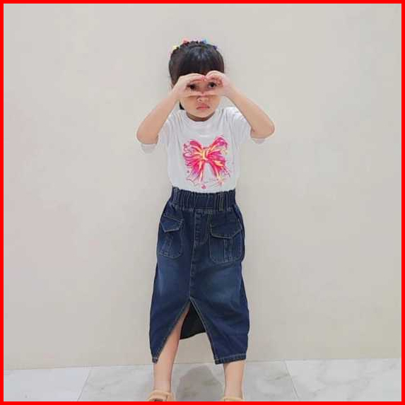 Follux - Oneset Anak Perempuan Kaos Skort Jeans Premium 1-9 Tahun