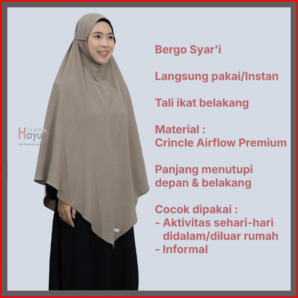 Bergo Harian Simpel Syar I Desain Tali Bahan Crinkle Strect Adem Tidak Menerawang