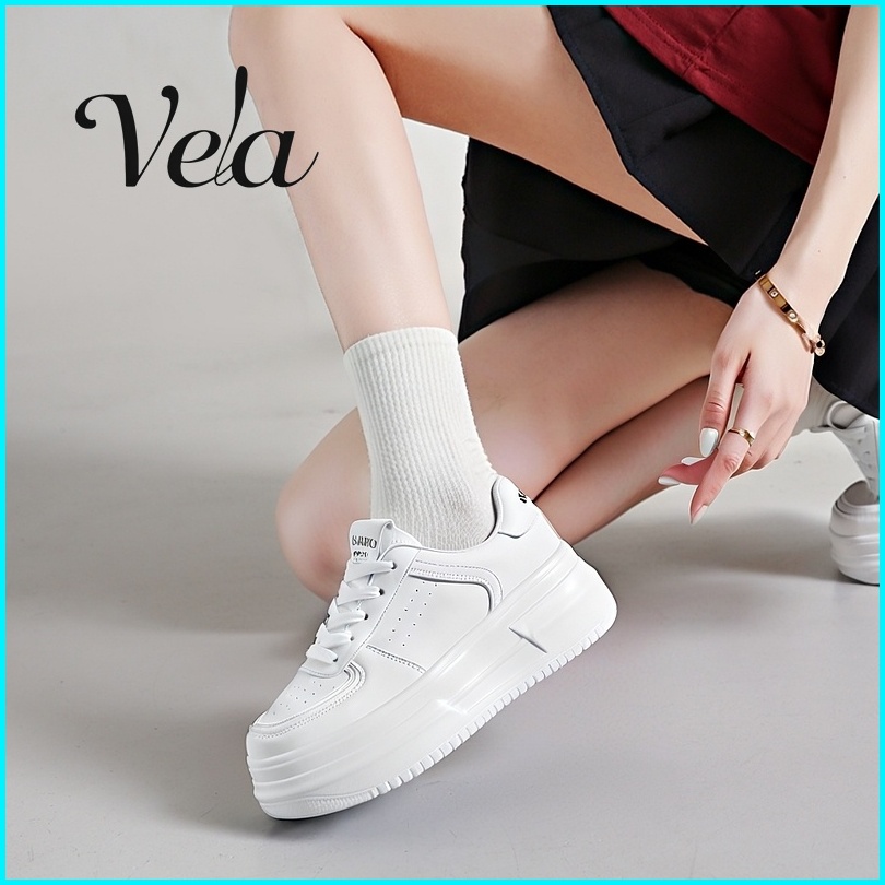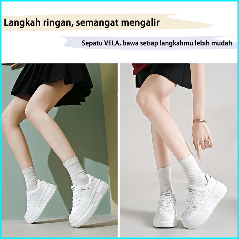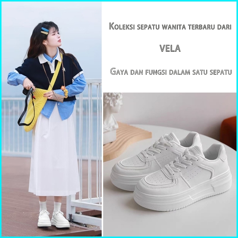 Vela Sepatu Sneakers Wanita Putih Olahraga Jogging Korean Casual Kanvas Kasual Sol Tebal Untuk