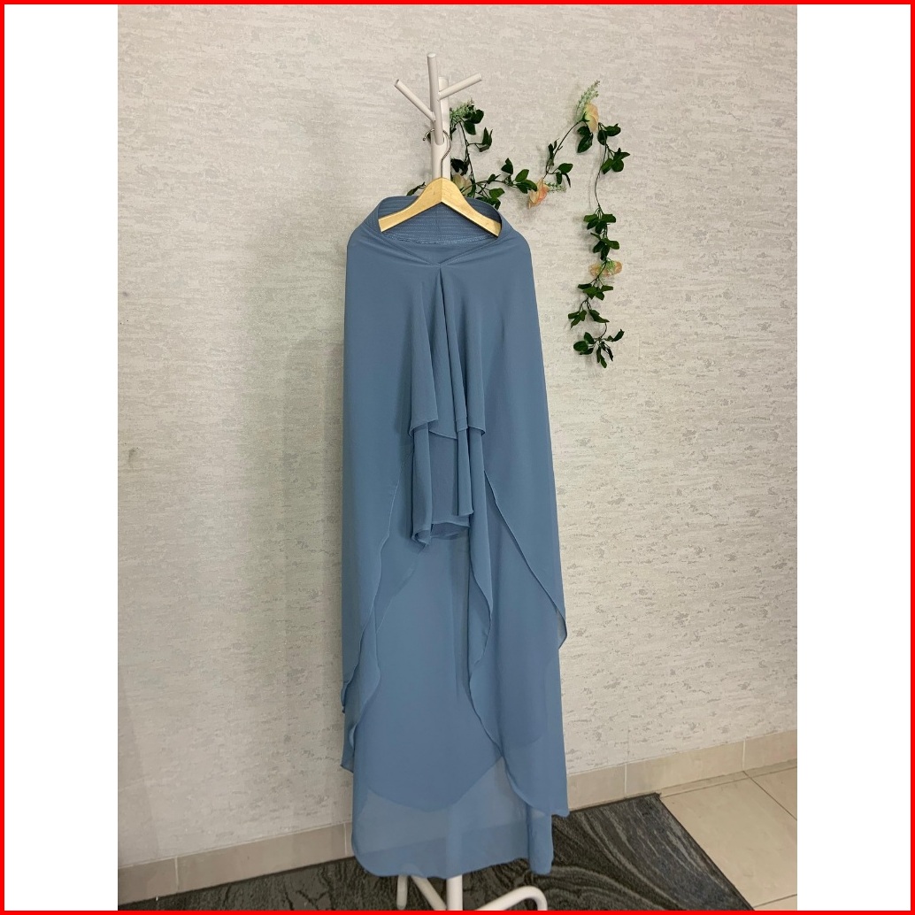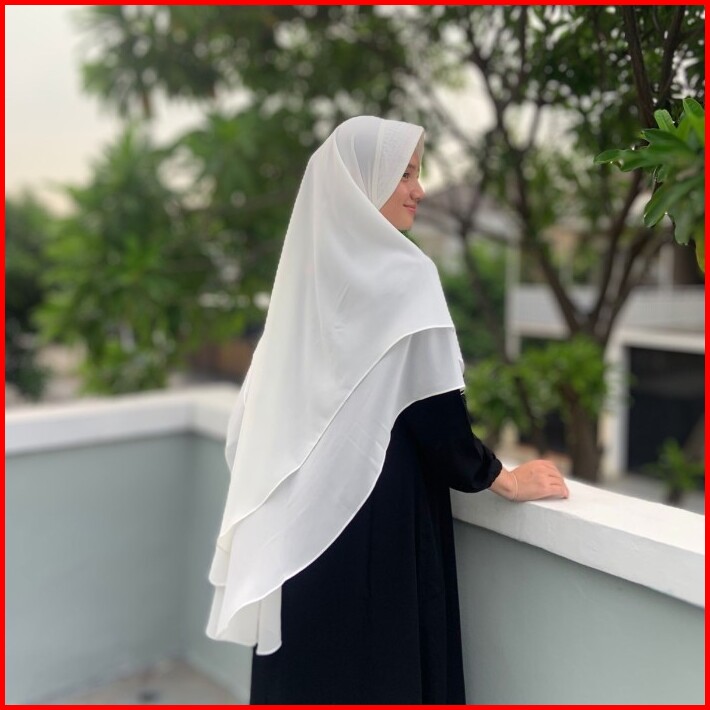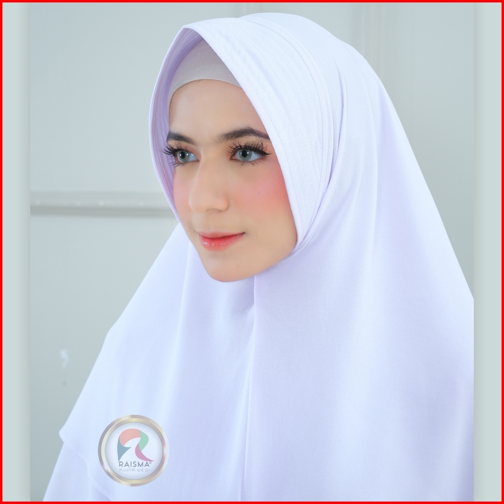 Raisma - Jilbab Syari Putih Asmie Pet 2 Layer Perlengkapan Umroh Haji Wanita