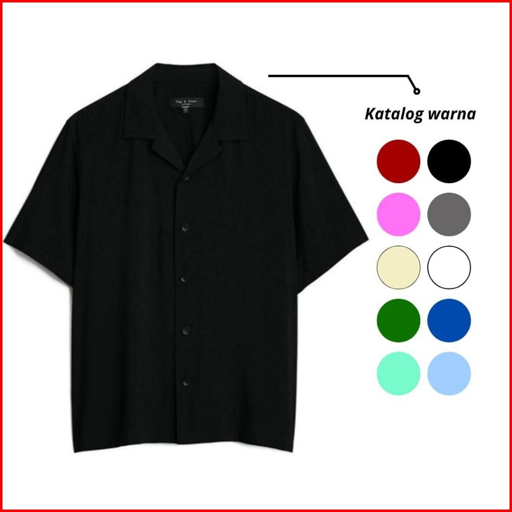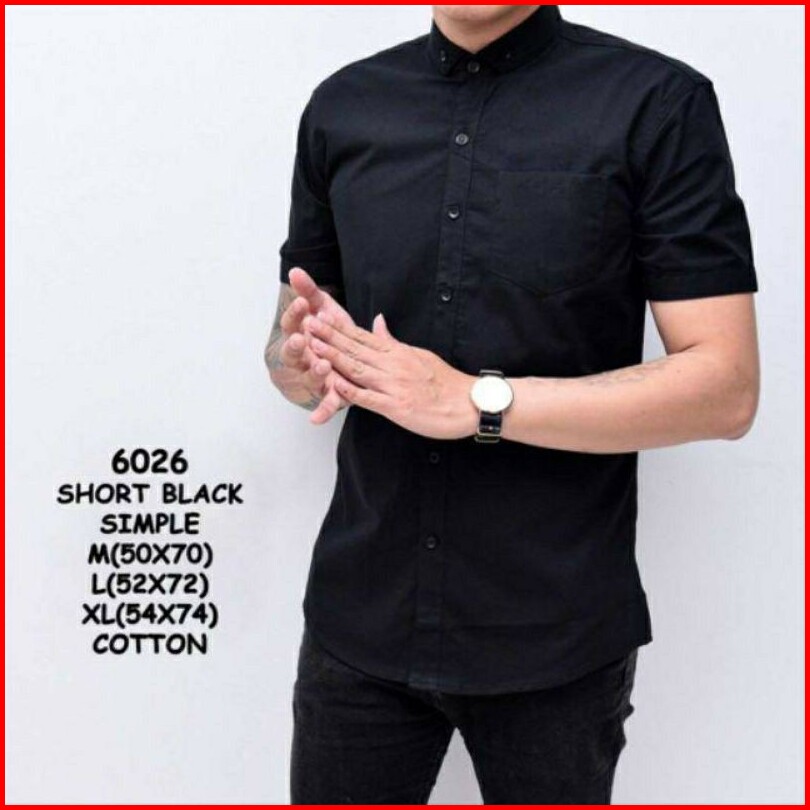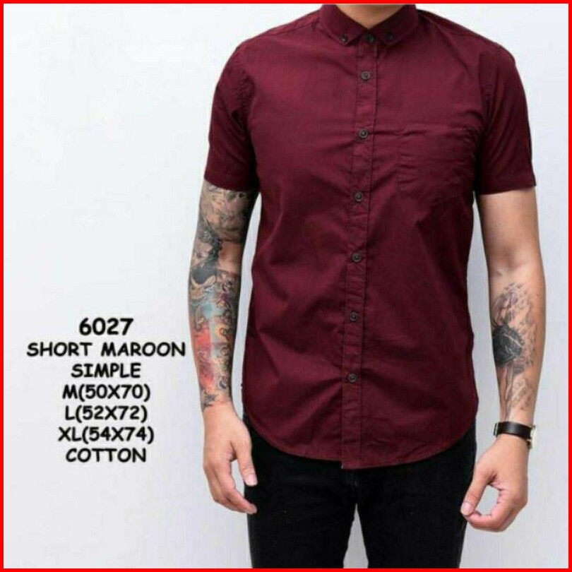 Kemeja Polos Lengan Pendek Pria Putih Merah Maron Hitam Navy Biru Dongker Kerah Shanghai Ciangi Slim