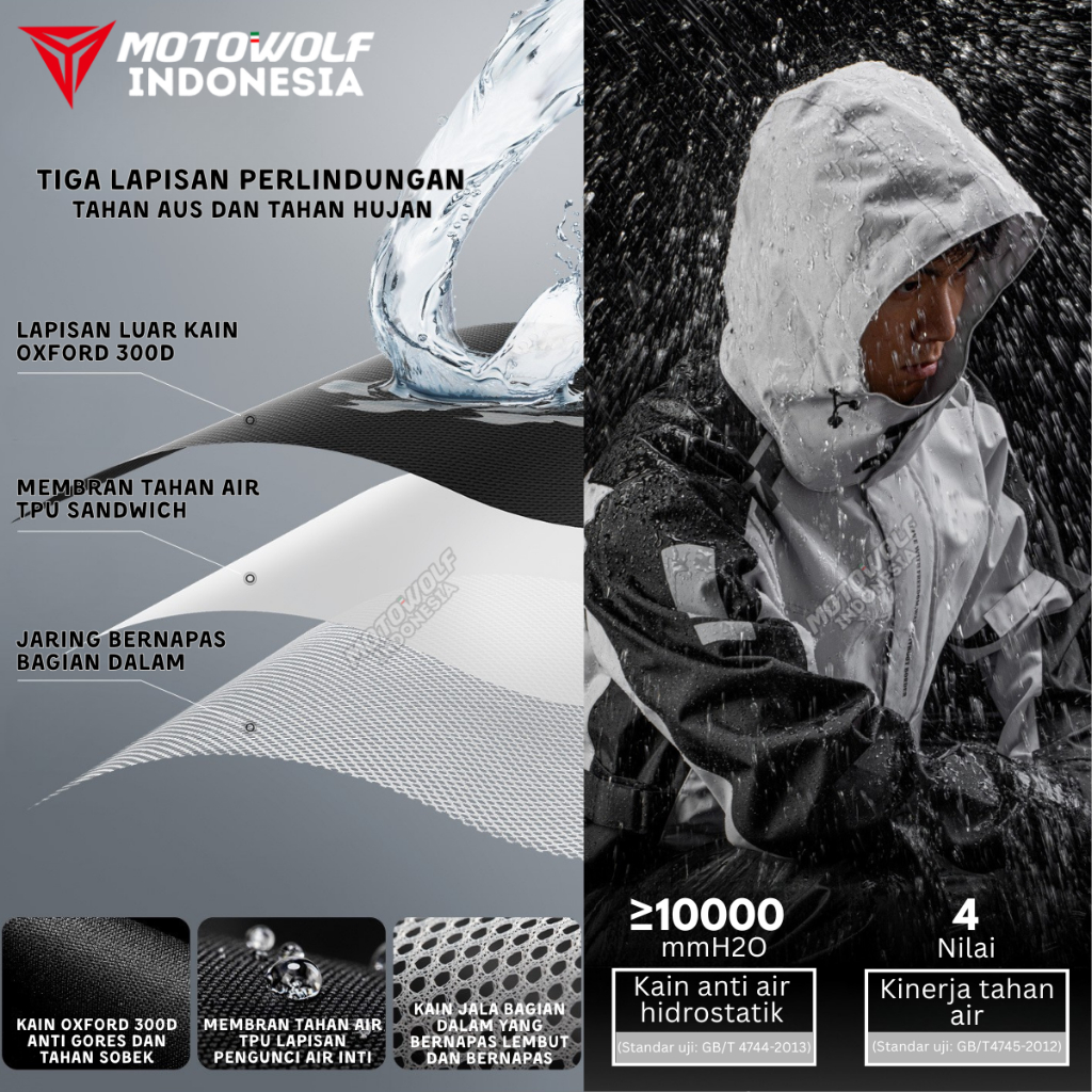 Motowolf RC1 Jas Hujan Motor Raincoat Touring 4 Musim Trendy Double Furing Cover Sepatu Resleting Tahan Air Bahan Oxford